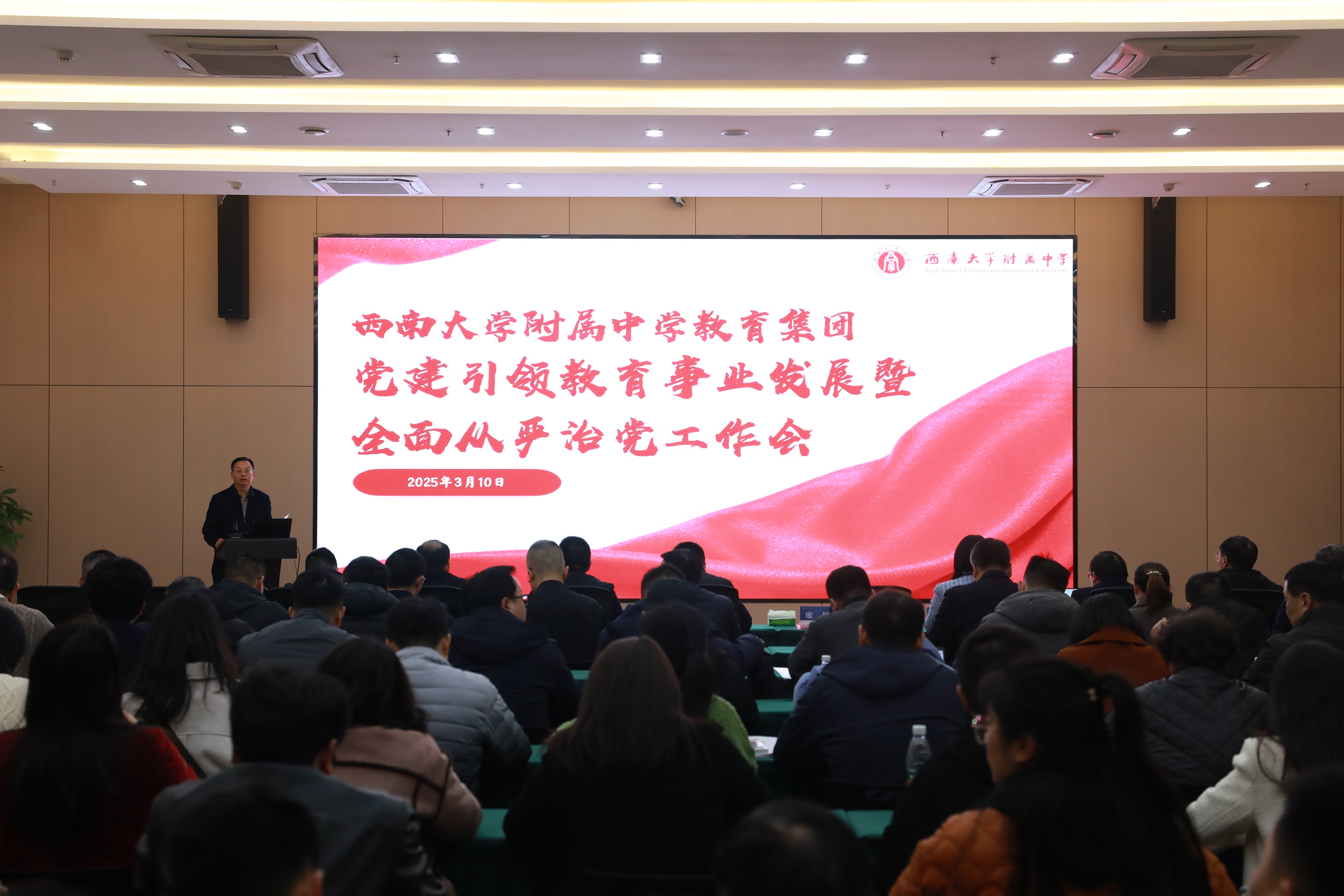 党委书记欧健系统总结了党建成果,强调全面从严治党是教育高质量发展的关键引擎,需深化党组织领导的校长负责制。针对制度执行虚化、党务业务“两张皮”等短板,提出“强基固本、补齐短板、提升质量、聚焦育人、聚合资源”五大举措,为全面从严治党与学校教育事业发展的深度融合进一步指明方向。