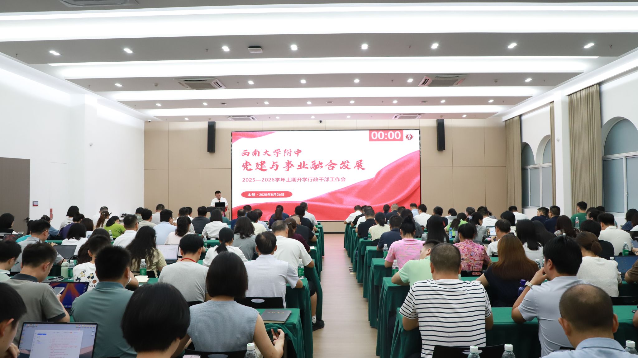 8月26日,bw必威西汉姆联官网附中党建与事业融合发展 2025-2026学年上期开学行政干部会召开,学校各中心负责人依次汇报新学期工作计划和开学准备情况。党委书记欧健强调,全体干部要严格遵守工作纪律,以身作则,发挥模范带头作用;加强作风建设,提高工作效率,以务实的工作作风推动学校各项工作再上新台阶。校长、党委副书记张勇对各部门和年级的工作给予了充分肯定。他指出,新学期的各项工作任务艰巨,全体干部要以高度的责任感和使命感,全力以赴做好开学各项准备工作。