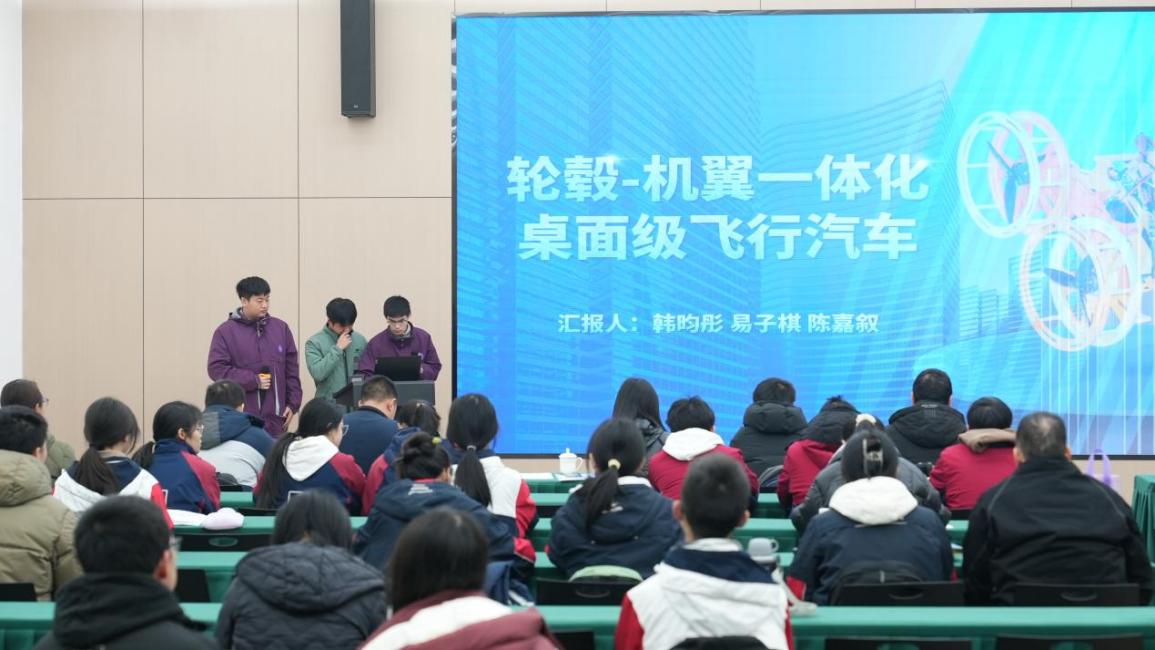《轮毂-机翼一体化桌面级飞行汽车设计》成果展示。展示学员:韩昀彤、易子棋、陈嘉叙