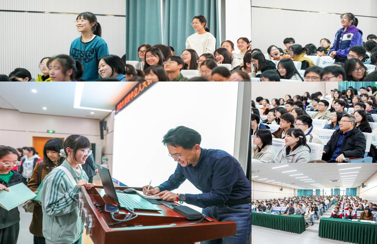 在互动环节,同学们踊跃提问,围绕生涯规划、工作日常话题与学长展开深入交流。文明校友耐心解答,并结合自身经历鼓励学弟学妹:热爱是最好的老师,积累是最稳的步伐。无论未来走向何方,都要脚踏实地、持续深耕,才能在各自领域发光发热。