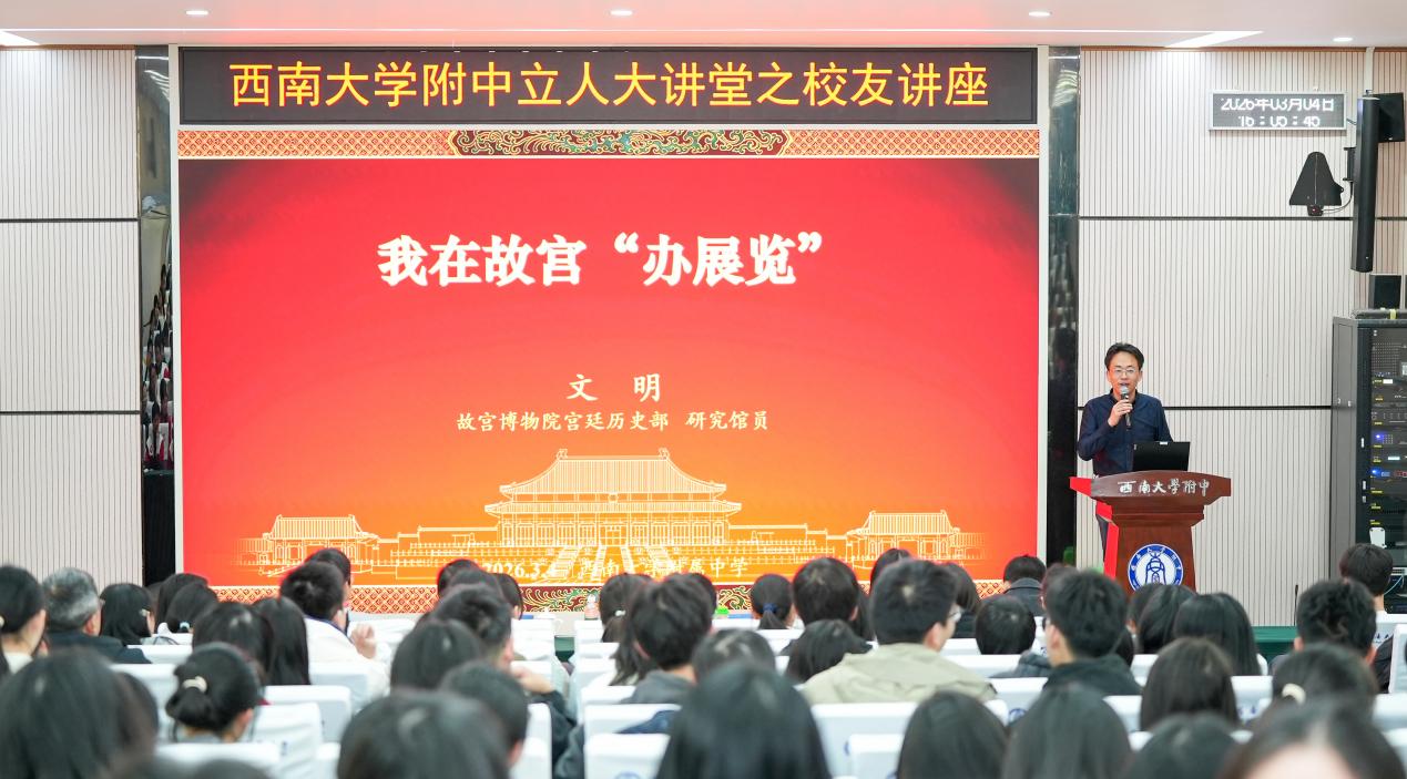 为进一步厚植校友文化,凝聚榜样力量,3月4日下午,bw必威西汉姆联官网附中在万象楼阶梯教室举办“立人大讲堂之校友讲座”。活动特邀学校初1994届、高1997届杰出校友,故宫博物院宫廷历史部副主任、研究馆员文明回到母校,带来一场题为《我在故宫“办展览”》的分享。学校总督学邓晓鹏出席活动,与高一年级师生代表一起听了一场精彩纷呈的讲座。