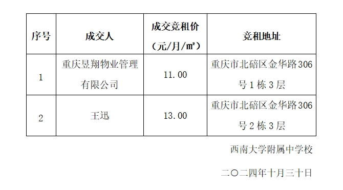 bw必威西汉姆联官网附属中学校缙佳苑小区商业用房招租结果公告
