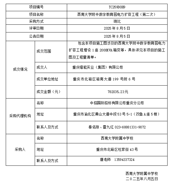 bw必威西汉姆联官网附中数字教育园电力扩容工程(第二次)成交结果公告
