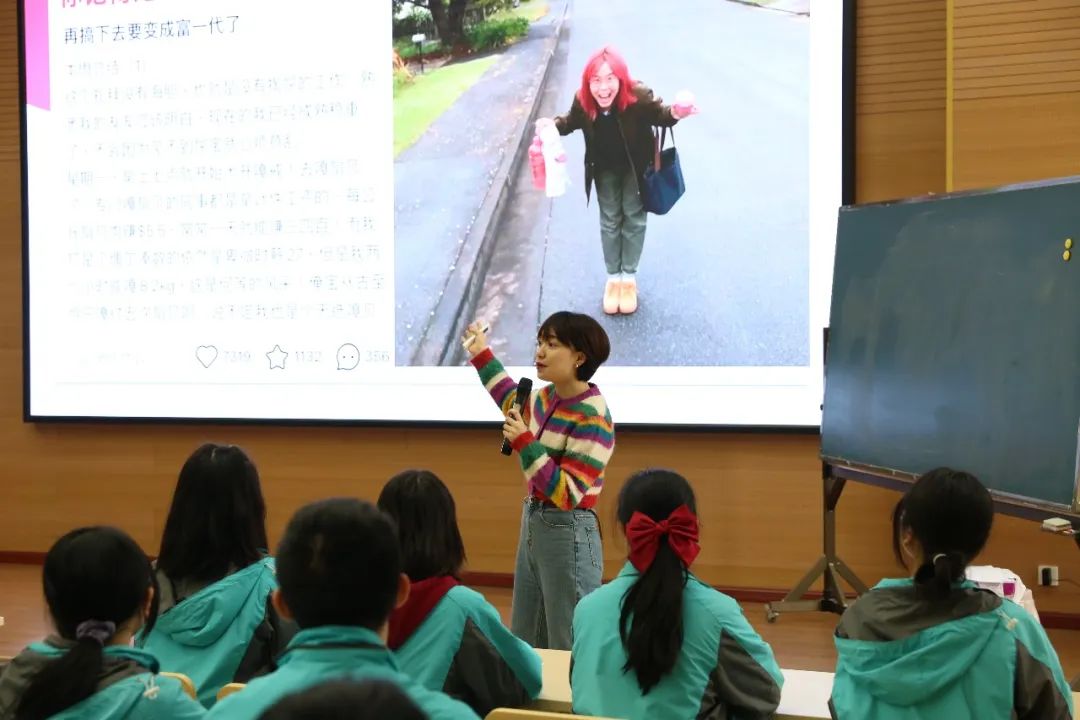金凡琪:从小就被家长灌输长大以后要当老师、当公务员,我也没有想过社会上还有那么多的职业可供我们选择,听完这堂课,我深深地感受到,我们不应该被时代所束缚,要做一个敢于追求自由和快乐的人。年轻人,要勇于去寻找那条最适合自己的道路,最终找到正确的方向。