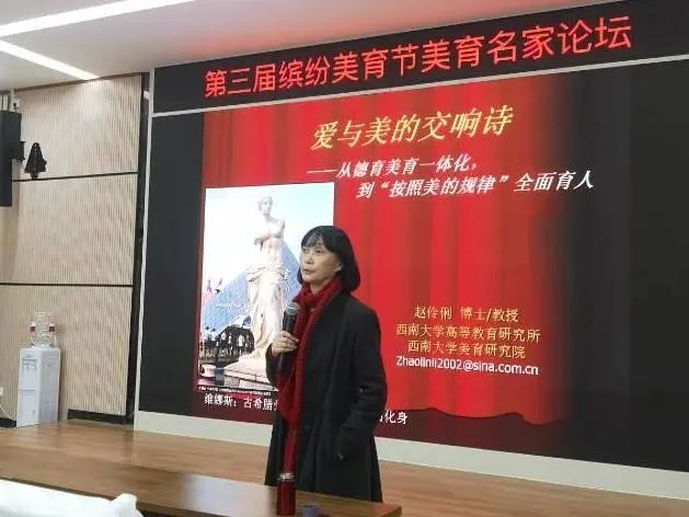 第三届美育节上,美育名家赵伶俐教授以“爱与美的交响诗”为题,为老师们深刻解读了德育与美育的一体化问题,强调了“按照美的规律”全面育人的重要性。整场讲座从发人深省的德育问题开始,在“爱与美的交响”中展开,以令人警策的论点结束。深受启发的老师们再一次认识到了美育在五育并举、全面育人中的独特价值,以及以“美”育人的重要意义。