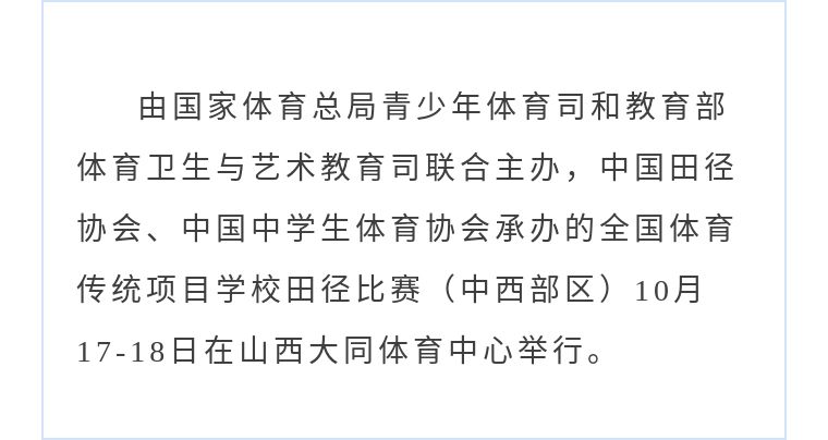 全国体育传统项目学校田径比赛是一项规格高、影响力大的国家级赛事,每年在暑假期间举办一次。今年联赛分成东部区、南部区、北部区、中西部区进行比赛,共有来自全国12个省、市、自治区的74所学校代表队的1400余名运动员参加为期2天的比赛。