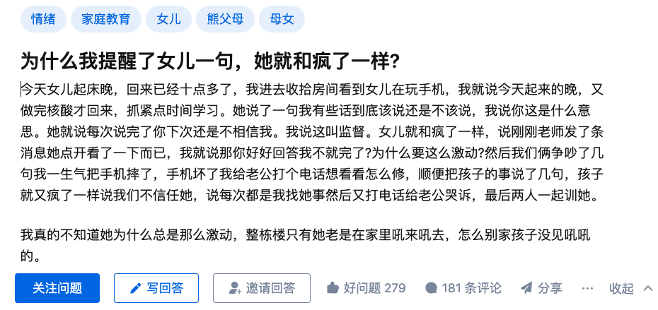 从这位提问者的描述里,我们可以看到很多家长“爱孩子”的方式。