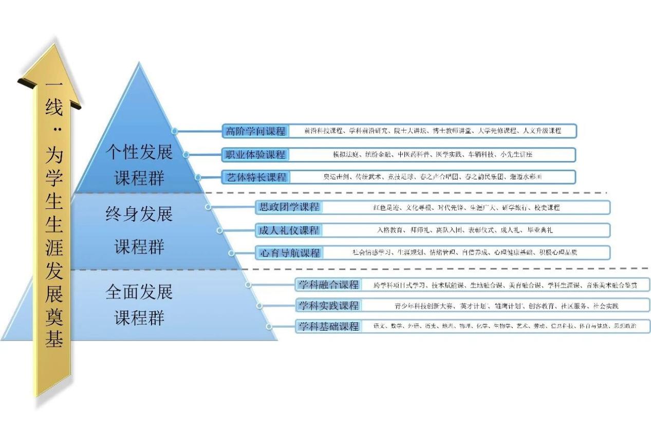 学校的美育实践以系统化的课程体系为根基,致力于打破传统美育壁垒,构建了“感美-审美-立美”三阶递进的美育逻辑,纵向贯通小初衔接、初中、高中全学段,形成了循序渐进的育人脉络。小初衔接阶段以“感官体验”为核心,通过行走学习、场馆研学唤醒学生的审美感知;初中阶段聚焦“情境体验”,借助沉浸式、探究式学习帮助学生建立正确审美观;高中阶段则以“任务驱动”为导向,通过项目式、圆桌式学习培育学生的审美创造能力。横向融合文科、理科、艺体类学科,挖掘每门学科的“美育点”,让数学的逻辑美、语文的文字美、科学的探究美都化作育人养分。