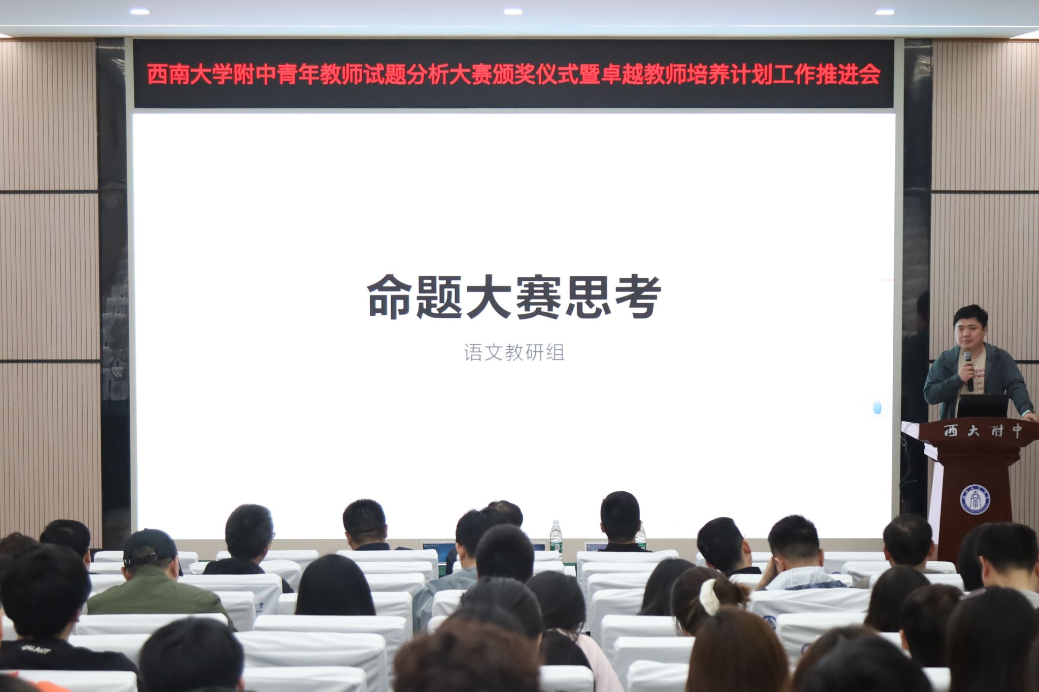 语文组教研组长王浩代表评委点评了青年教师们的表现,肯定了老师们的潜力及专业素养,并就教研组如何提升青年教师在试题分析及命题能力方面提出了中肯而可行的建议。