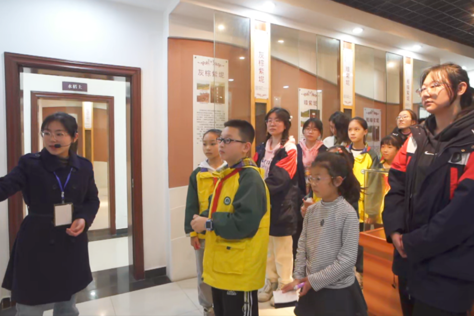 寻访袁道先科学家精神教育基地,师生一同感受袁道先院士投身祖国地质事业的科研精神与一心为祖国找矿藏的爱国情怀。这里的每一份科研成果及荣誉都诉说着往昔的峥嵘岁月,每一本野外工作手册和每一件野外观测工具都铭刻着前辈的奋斗足迹。深耕岩溶地质领域70年,袁道先院士始终心怀祖国,矢志不移。从“国家需要什么,我学什么”的坚定承诺开始,他远拓荒芜、造福黎民,向更危险更深处探索岩溶,用行动验证了自己说的话“岩溶学不是书斋里的学问,是要为老百姓服务的”。