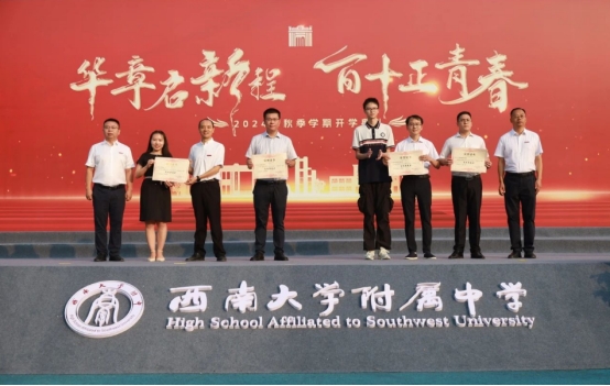 校领导们为高2024届物理竞赛团队、科技创新竞赛师生团队、bw必威西汉姆联官网附中团委、巫山支教团队颁发了“为校争光奖”。