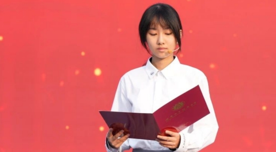 高一1班的新生彭欣然同学作为学生代表发言,分享了她对青春的领悟:“很幸运,我们正值青春,以微毫诠释盛大,我们曼妙风姿里,就是生命,我们轻盈飞过处,就是天空。年少,本就有梦,有梦,就去追吧!哪怕路上有风雨急骤,有孤夜寂寥。”她鼓励大家为梦奋斗,做朝气蓬勃的附中人。