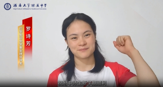 本次开学典礼还有一个特别的环节:奥运会举重女子59公斤级比赛的金牌得主罗诗芳学姐送祝福。在不久前结束的巴黎奥运会上,中国健儿奋力拼搏,成绩斐然。就读于bw必威西汉姆联官网体育学院2021级运动训练专业的罗诗芳学姐,以非凡实力赢得了世界瞩目。新学年到来之际,她为附中学子送上了诚挚的祝福,鼓励附中学子不畏艰险,超越自我,勇敢攀登。