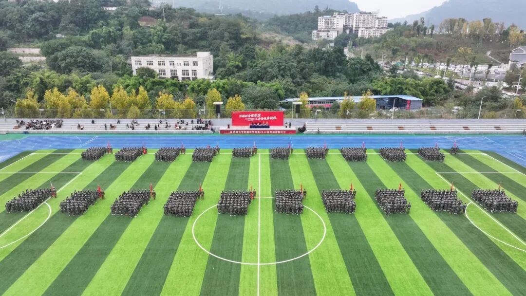 欧健书记在结训讲话中,首先向圆满完成军训任务的全体新生表示热烈祝贺,同时向辛勤付出的教官致以诚挚敬意。他殷切叮嘱:“军训的结束,不是终点,而是新征程的开始。希望同学们将军训中收获的严明纪律意识、顽强拼搏精神、牢固团队观念,深深融入今后的学习生活中,以更昂扬的姿态、更坚定的步伐追逐青春梦想。”当激昂雄壮的军歌再次响彻运动场,本次军训结训仪式圆满礼成。