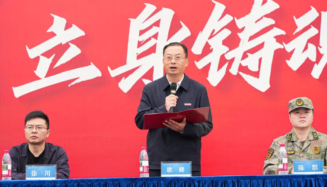 教官代表刘鑫教官话语如钢,他郑重承诺将以严明的纪律、科学的训练,带领同学们上好这堂特殊的“军营第一课”。学生代表陈羿帆代表全体新生庄严表态,将以饱满的热情、昂扬的斗志全身心投入训练,不负学校与师长的殷殷期盼。