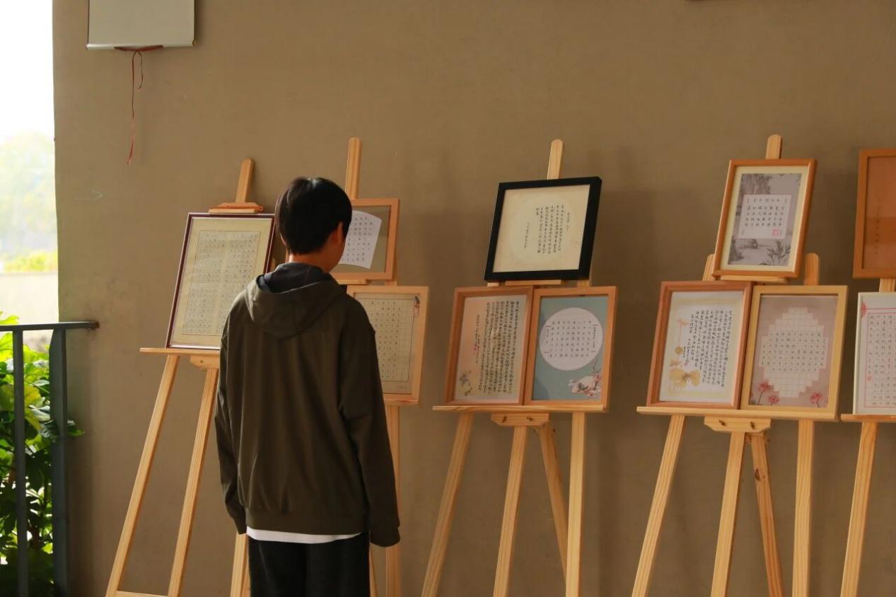 书法展上,同学们提交的硬笔、软笔作品风格各异:楷书工整端庄,行书飘逸流畅,篆书古朴典雅,每一笔都藏着对传统文化的敬畏;绘画展中,美术班的同学们以“智创未来”“校园生活”为主题,用水粉、国画等形式勾勒出对未来的畅想——有描绘智能校园的科技场景,有定格运动会上的活力瞬间,色彩饱满、创意十足。优秀作品不仅被颁发证书,部分还被学校收藏,成为校园文化的珍贵印记。