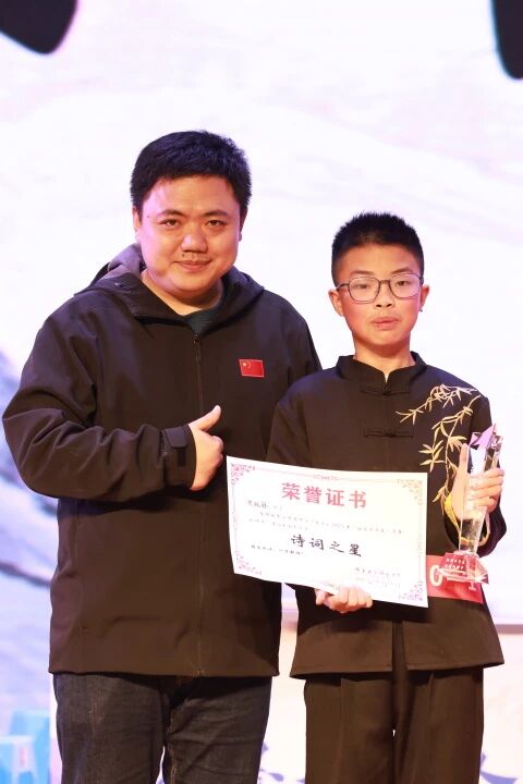 决赛现场,“大浪淘沙”环节里,选手们凝神静听,5秒内快速抢答,用扎实的诗词积累突破重围;“速度与诗情”环节中,三人组队绕三角跑位,描述者巧妙避字、猜题者灵犀一点,默契配合引得台下掌声连连;“百转千回”的策略博弈与“孤注一掷”的分数比拼,更将氛围推向高潮。最终,初2028届20班,2027届9、27班获得冠军,初2028届6班段钰林、初2027届5班何雨泽获得“诗词之星”称号。