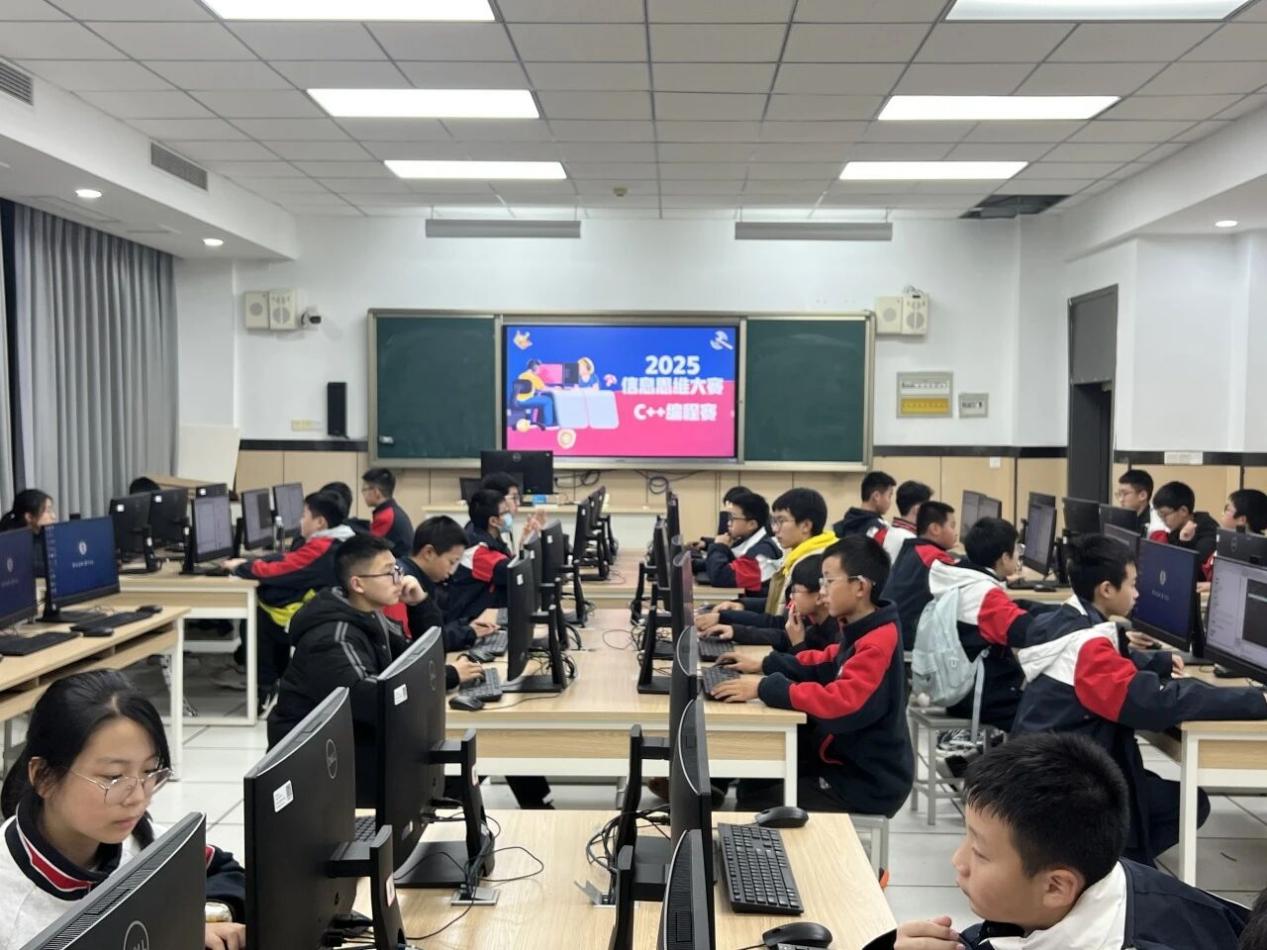 在计算机教室里,也有一场关于“字节跳动梦想·指尖编写未来”的科技比拼。鼠标操控大赛中,选手们在15分钟内反复尝试,操控角色绕开柱子冲击高分,屏幕上的“NEW BEST”不断刷新;C++编程赛现场,同学们专注地敲击键盘,在1小时内攻克15道编程题,用代码解决问题的过程尽显逻辑思维的魅力。