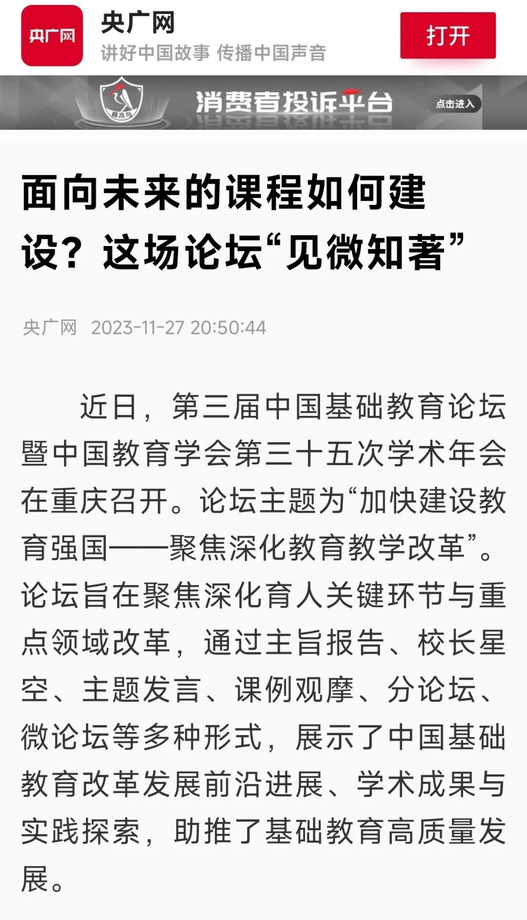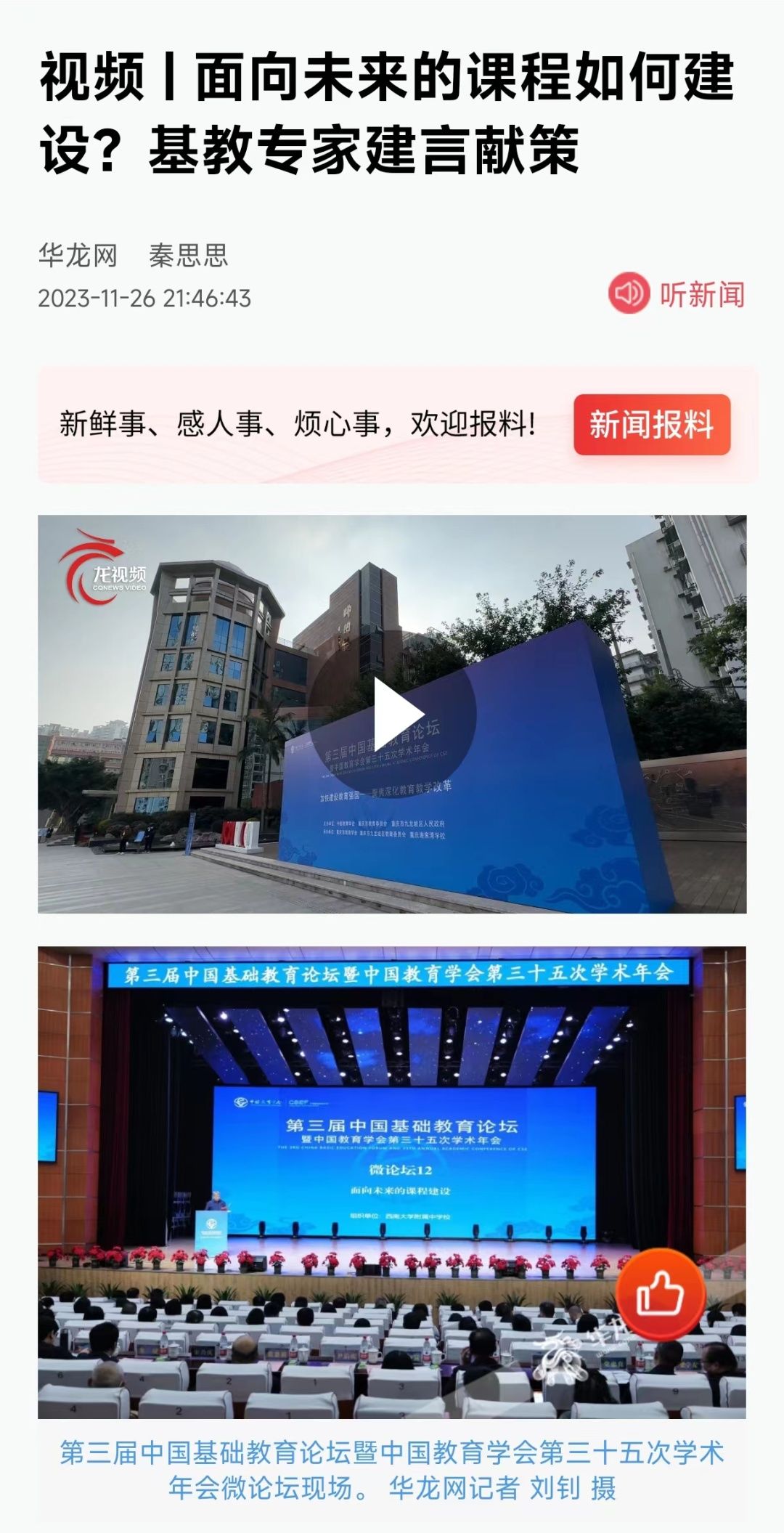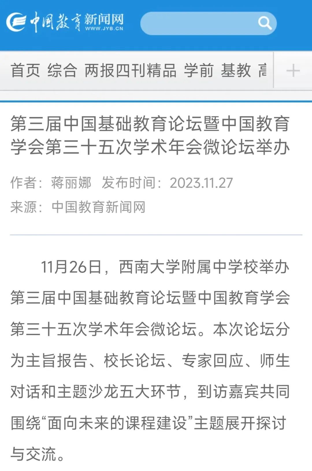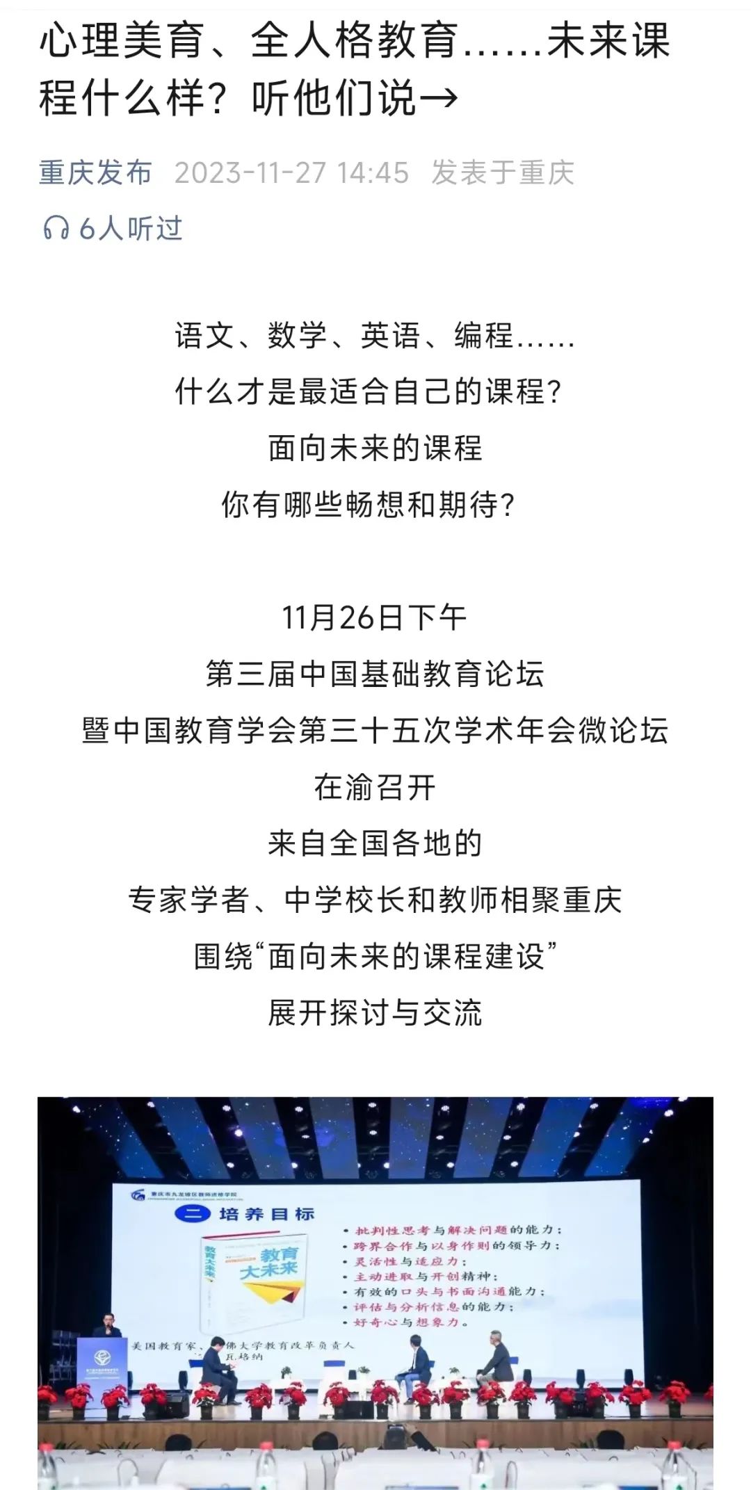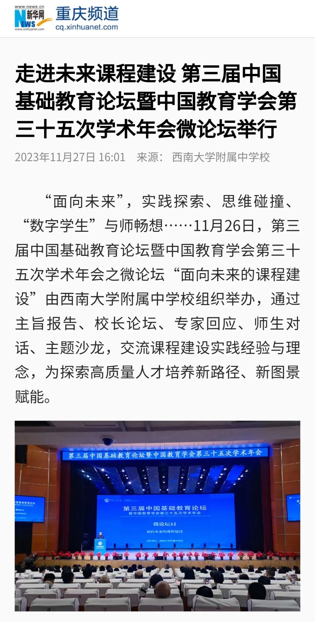 走进未来课程建设 第三届中国基础教育论坛暨中国教育学会第三十五次学术年会微论坛举行