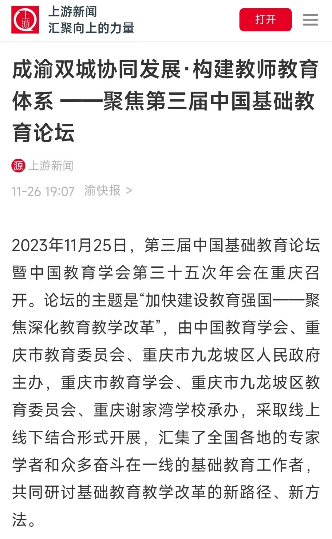 成渝双城协同发展·构建教师教育体系 ——聚焦第三届中国基础教育论坛
