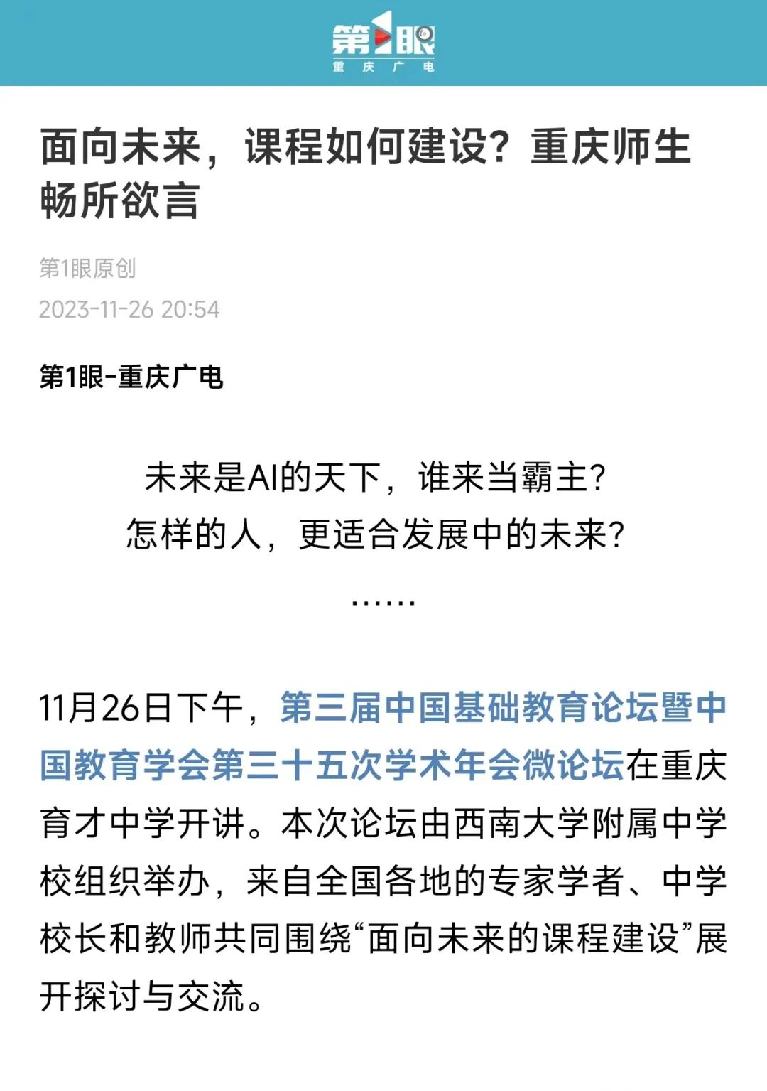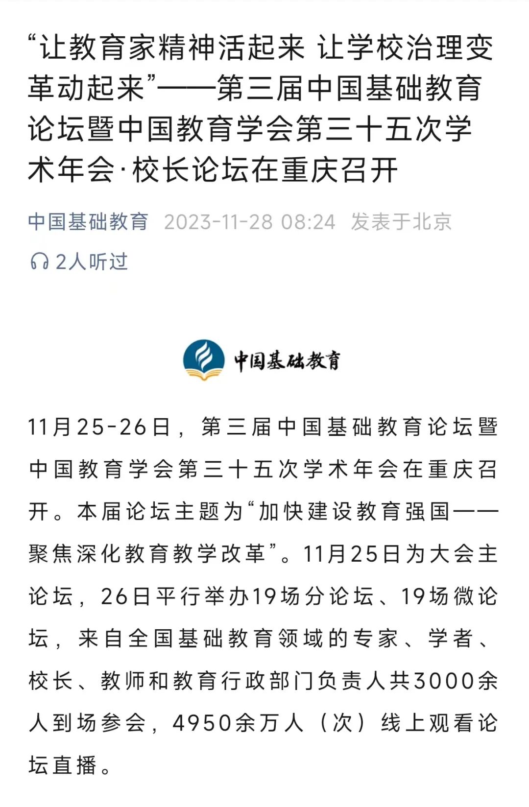 “让教育家精神活起来 让学校治理变革动起来”——第三届中国基础教育论坛暨中国教育学会第三十五次学术年会·校长论坛在重庆召开