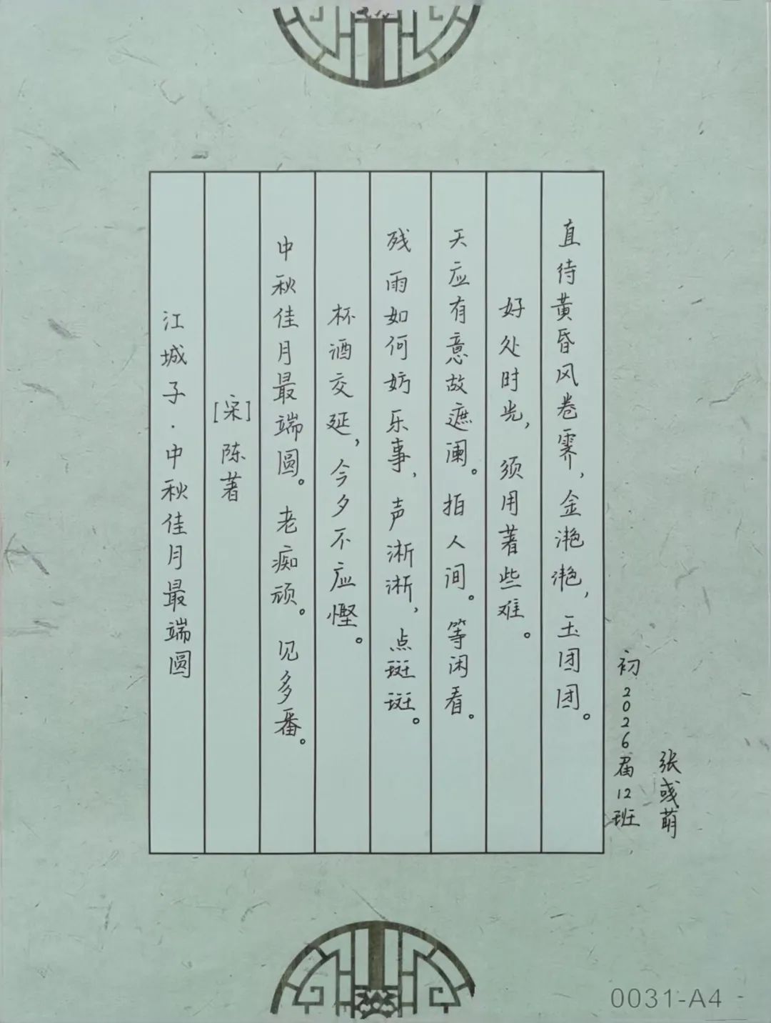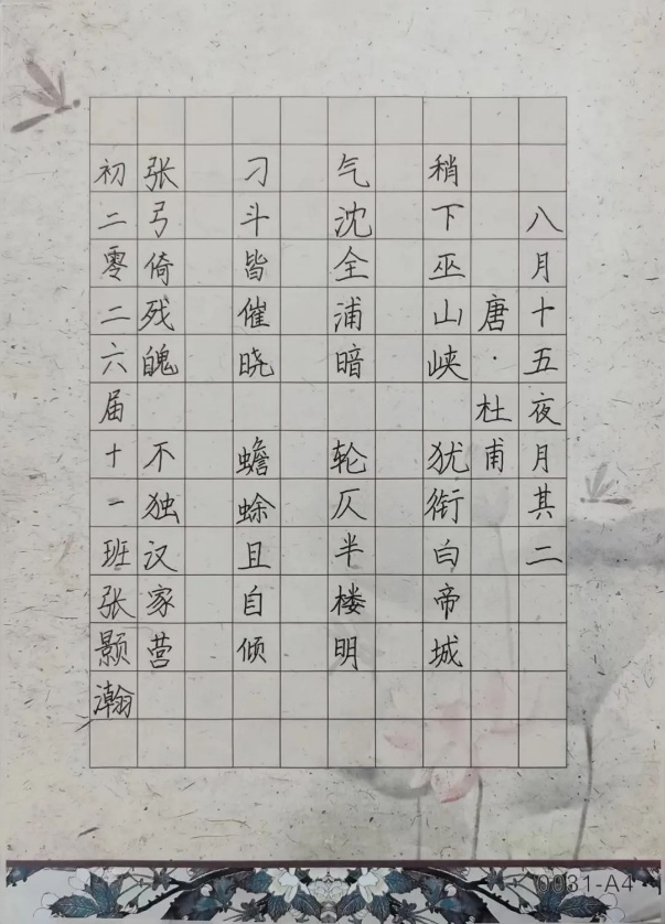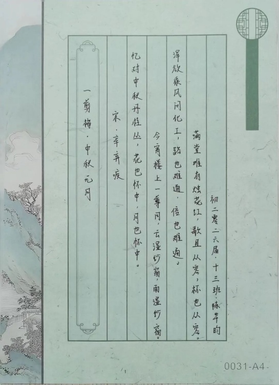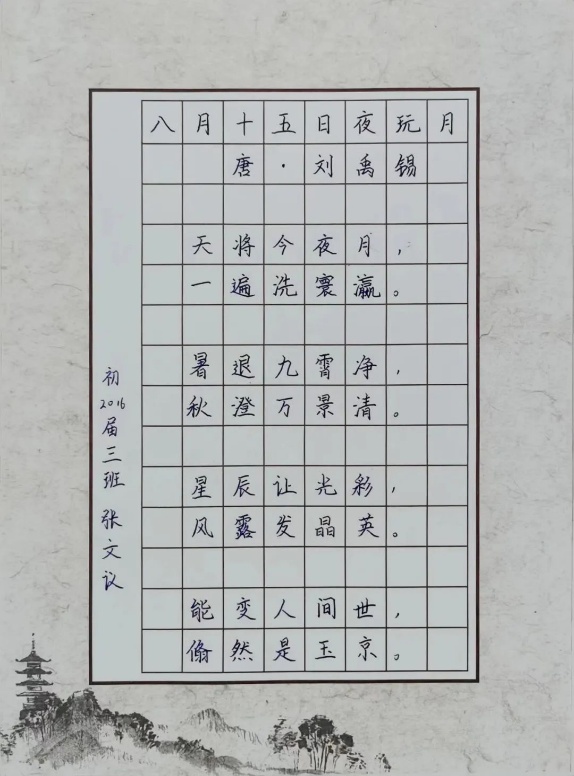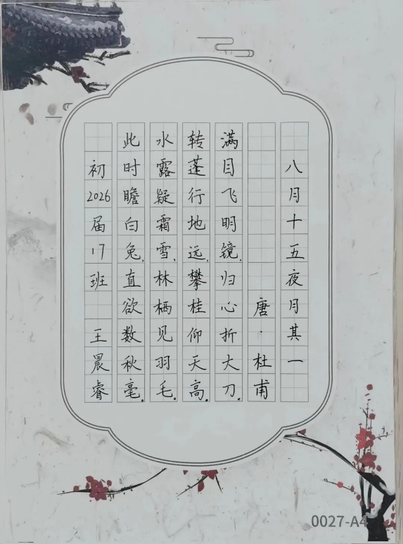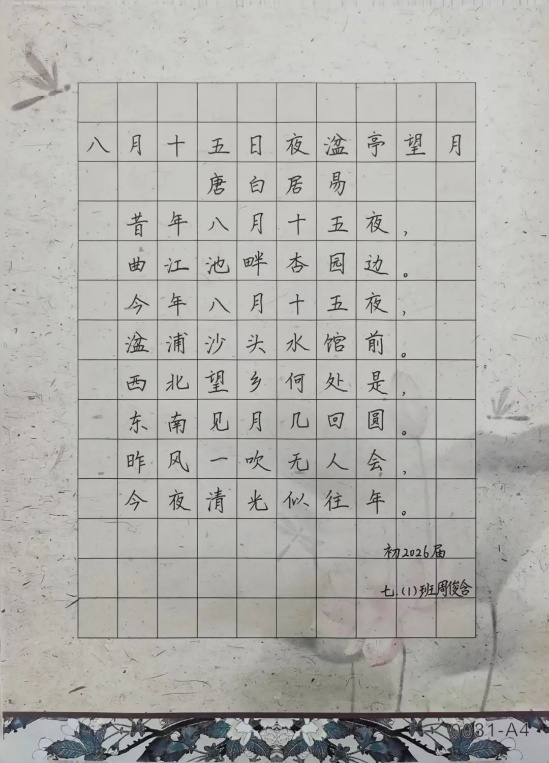 除了书写中秋诗词,同学们在鉴赏中秋诗词时发表了自己的想法,多个角度来分析这些诗词,从而更深入地理解这些作品的文化内涵与艺术价值。