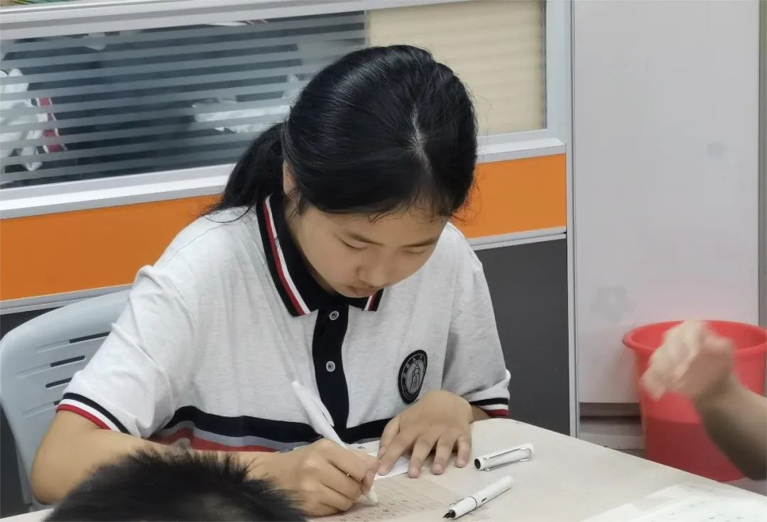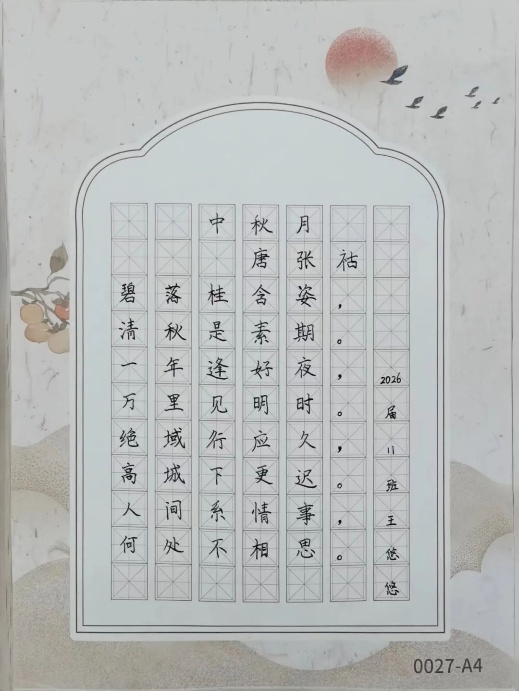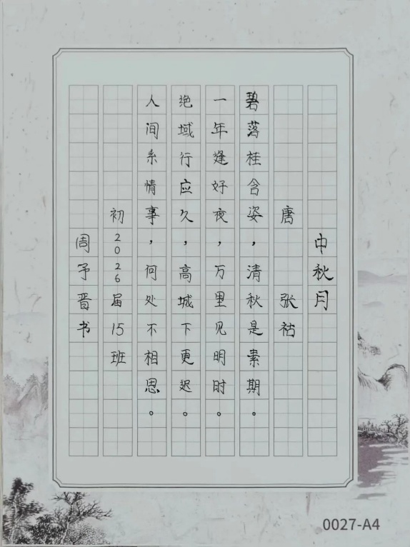 在活动现场,学生们积极参与,书法作品形式多样。在笔墨流转间,学生品读诗句,以诗言志。李老师也欣喜地发现,学生们的作品不仅表达了对中秋节团圆和欢度国庆节的喜悦,更展现出了他们对诗词书法的热爱和对传统文化的深刻领悟。