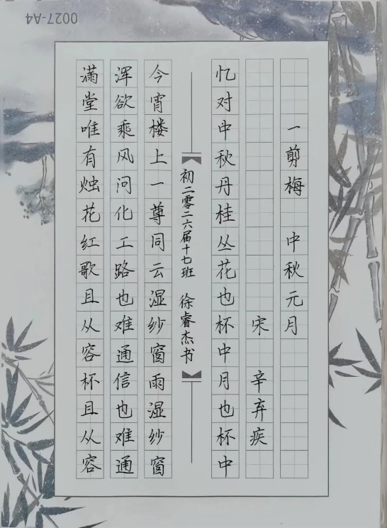 学生手写书法作品