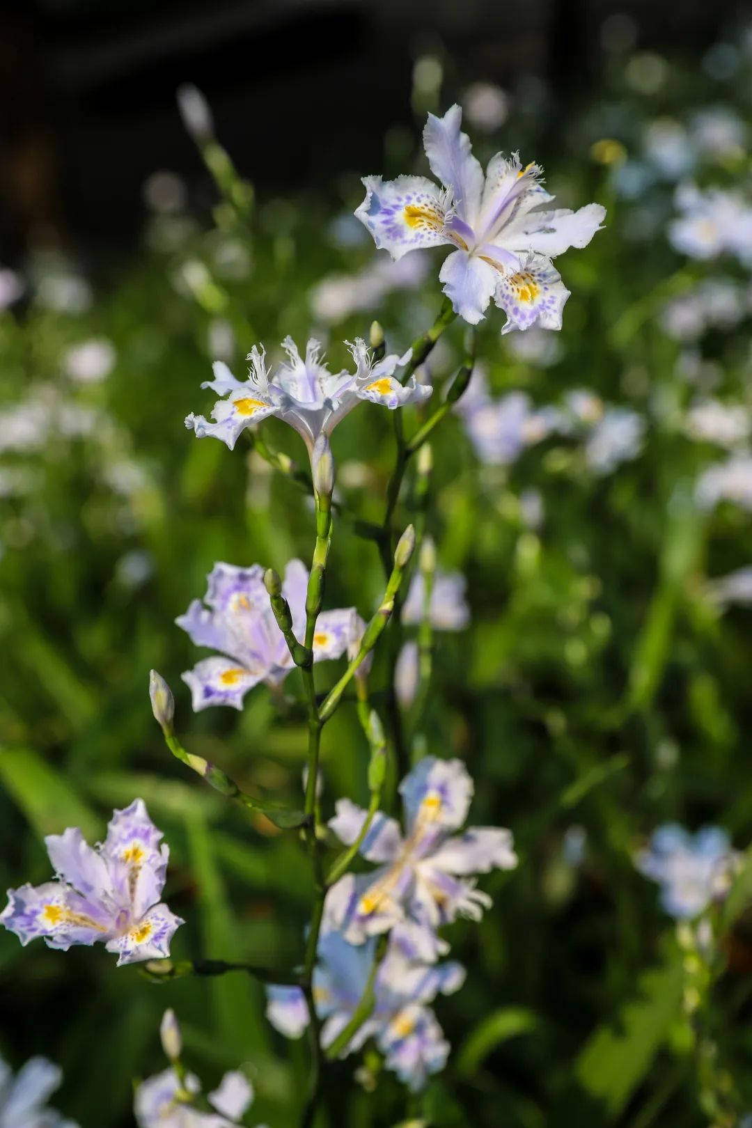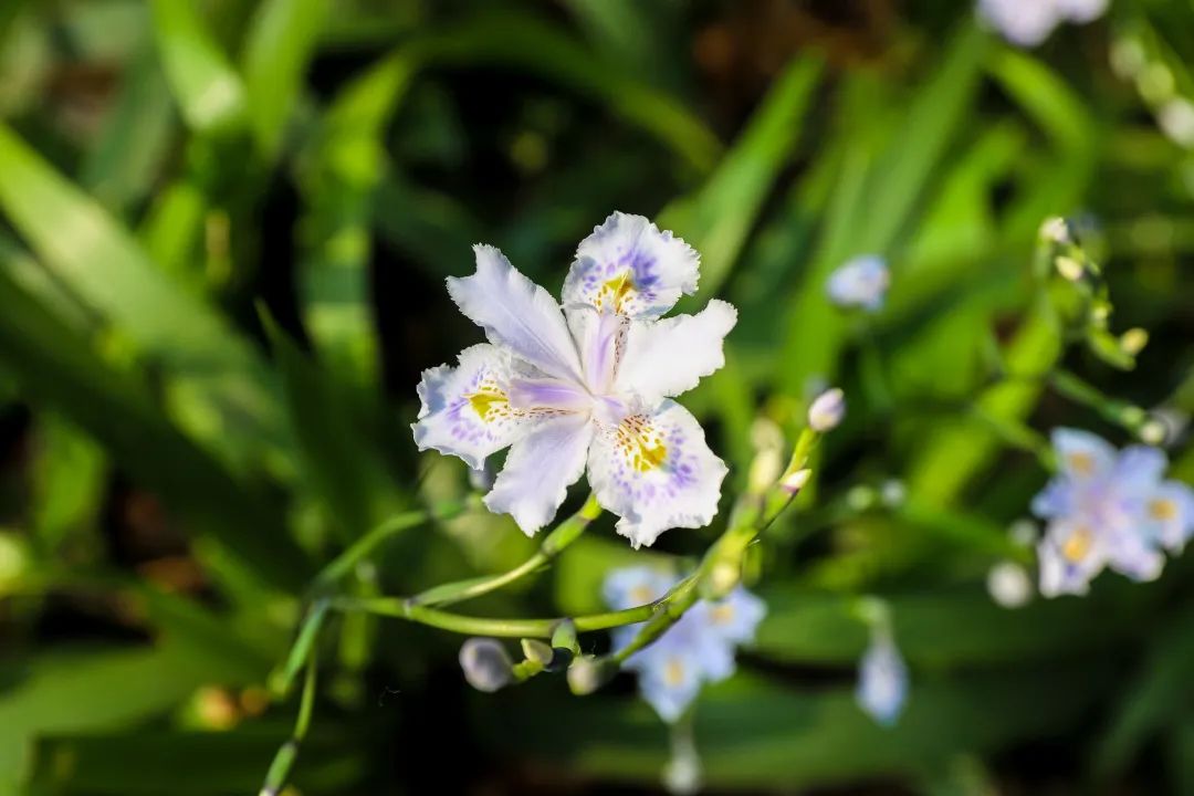 扑朔迷离,梦幻,美得令人透不过气来。远看,青绿之间总看不透她的冷艳,近视,紫蓝之间总少不了他的伶俐。可惜了,蝴蝶花上没有蝴蝶。