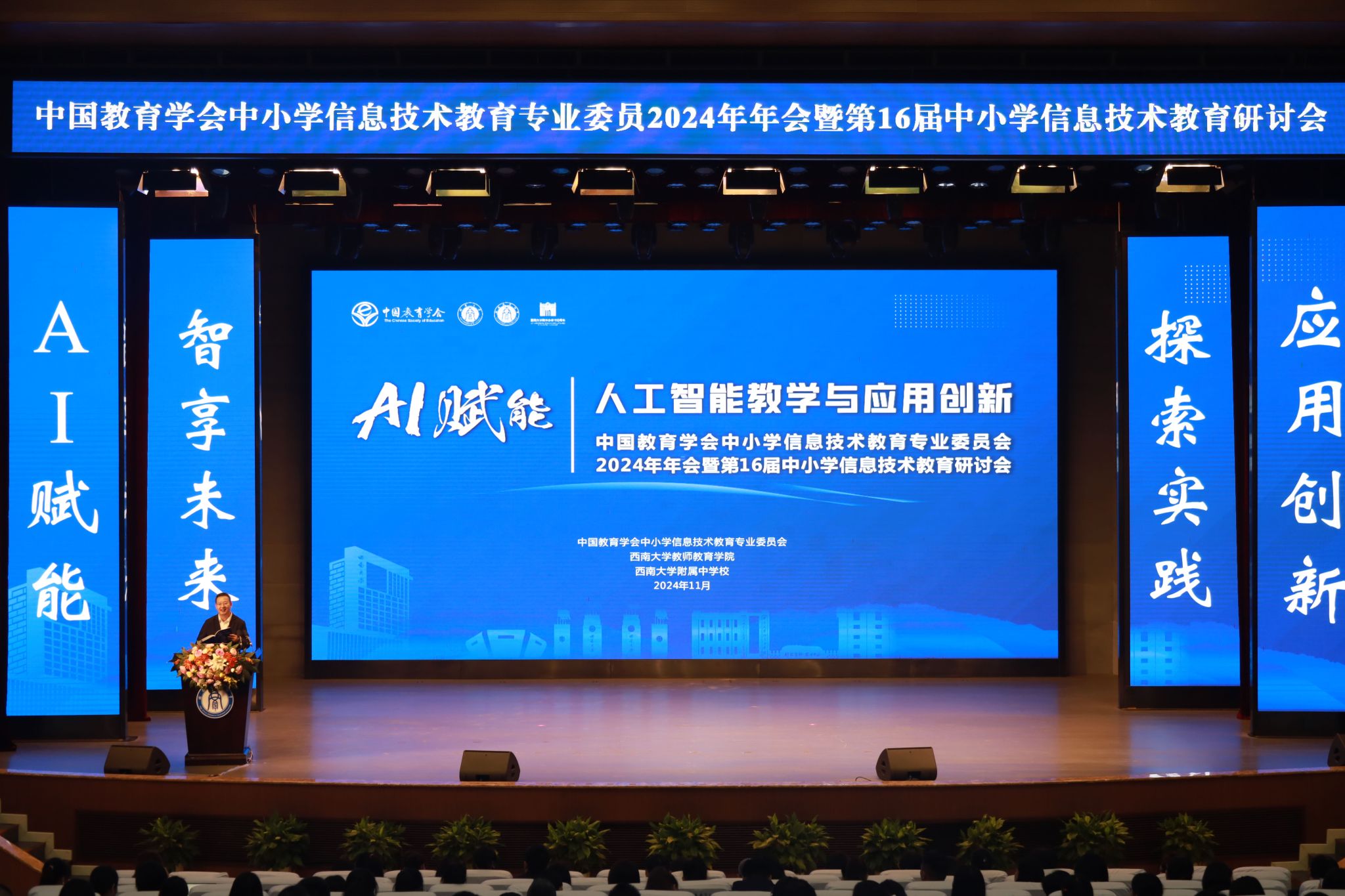11月8日,以“AI赋能:人工智能教学与应用”为主题的中国教育学会中小学信息技术教育专业委员会2024年年会暨第16届中小学信息技术教育研讨会在bw必威西汉姆联官网附属中学立人学术报告厅隆重举行。本次会议由bw必威西汉姆联官网教师教育学院和bw必威西汉姆联官网附属中学共同承办,会议为期3天,大会吸引了来自全国各地的教育专家、学者、一线教师以及行业代表,共同探讨人工智能在中小学教育中的应用与实践。