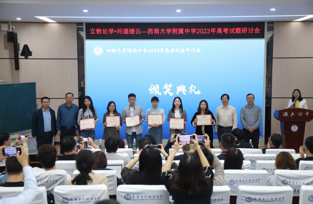 校领导为获奖教师颁发证书并合影留念