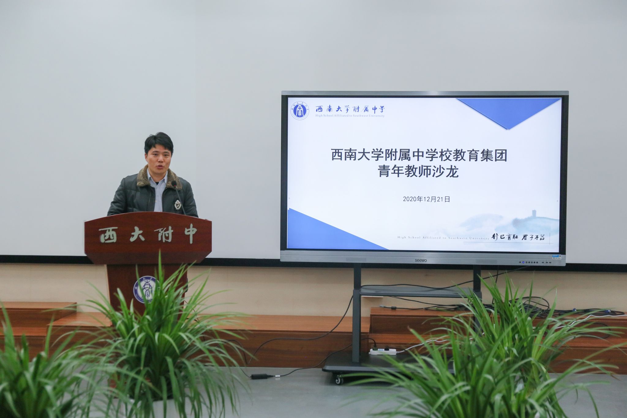 来自本部(含东区)、两江新区西大附中(含州、竹林)、两江实验学校、银翔实验中学六个校区的七名青年教师代表作主题分享他们深情地讲述自己入职附中后导师悉心指导的温馨幸运、赛课初露锋芒的幸福、指导学生获奖的喜悦、与自己“死磕”的勇气、收到第一笔稿费的快乐也有初入职场的不适职业发展的期待、工作生活兼顾的困惑以及安家落户的选择等。自由座谈环节,老师们更是畅所欲言,表达着对附中温暖大家庭的感恩及立足岗位,奉献担当的热忱。其间,黄仕友副校长强调和重申了学校成立教师发展中心的宗旨,并就学校为教师专业发展创设的平台和前景作了详细介绍。