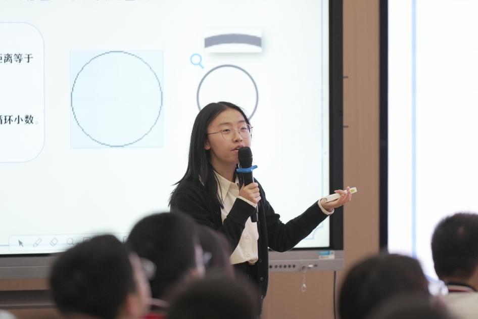 数学组余巧琳老师以点线面关系为认知锚点,巧妙运用实物模型与几何画板动态演示,通过结构化问题链串联课堂活动。史华妤老师以"不为五斗米折腰"典故中的"斗"为切入点,将历史文脉与数学思维有机融合,营造出师生互动活跃、思维碰撞热烈的课堂氛围。