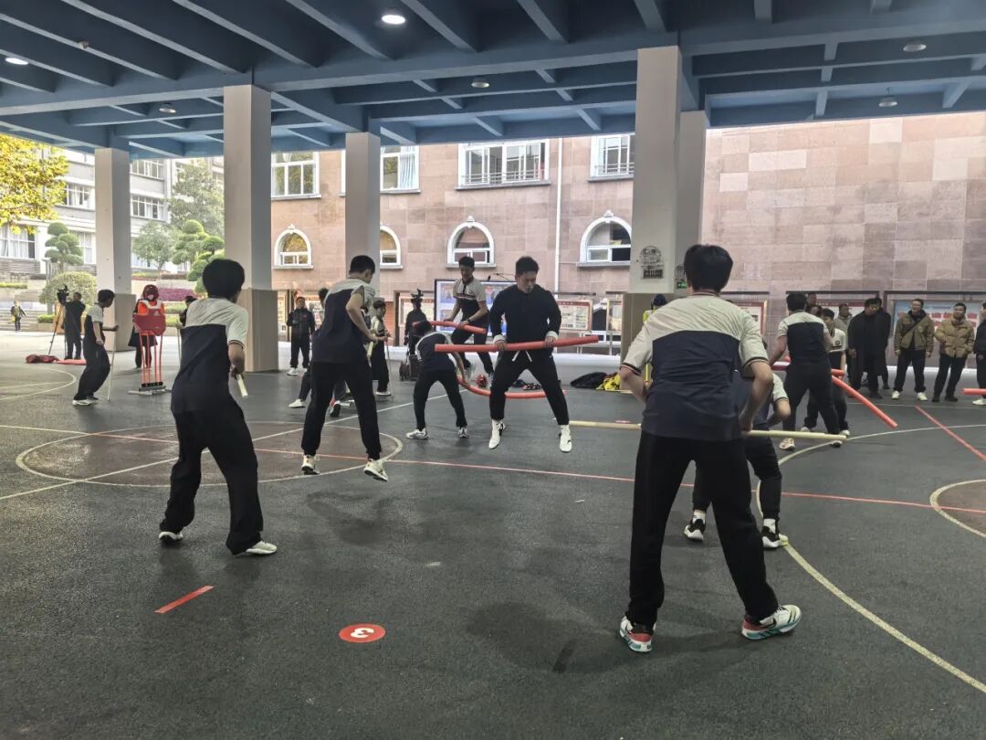 在《武术短棍攻防技法在实战中的运用》一课中,以探寻抗倭名将俞大猷的棍法著作《剑经》秘籍为情景主线,通过一式式秘籍招式的解读探寻棍法实战的奥义,学生们手持短棍,不仅学习了“鞭杆”技法的攻防要领,更在“习武强体魄,以志报中华”的响亮口号中,感悟着“立身正直、自强不息”的武术精神。孔老师通过小组探究合作、实战模拟等环节,有效提升了学生的身体协调性和攻防意识,将民族传统体育的文化种子,深深植根于学生心中。