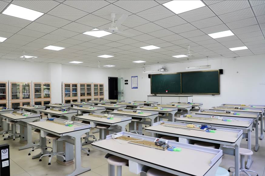 主要用于开展初中、高中电学分组实验。如伏安法测电阻、测量小灯泡的电功率、测定金属的电阻率、测电池电动势和内阻、练习使用多用电表、观察光敏热敏电阻特性、探究影响感应电流方向的因素等实验。同时,还用于开展初、高中课外探究实验,通过实验室丰富的学生课外探究活动,不仅提高学生的学习兴趣和动手操作能力,还可以增强学生的学科素养。