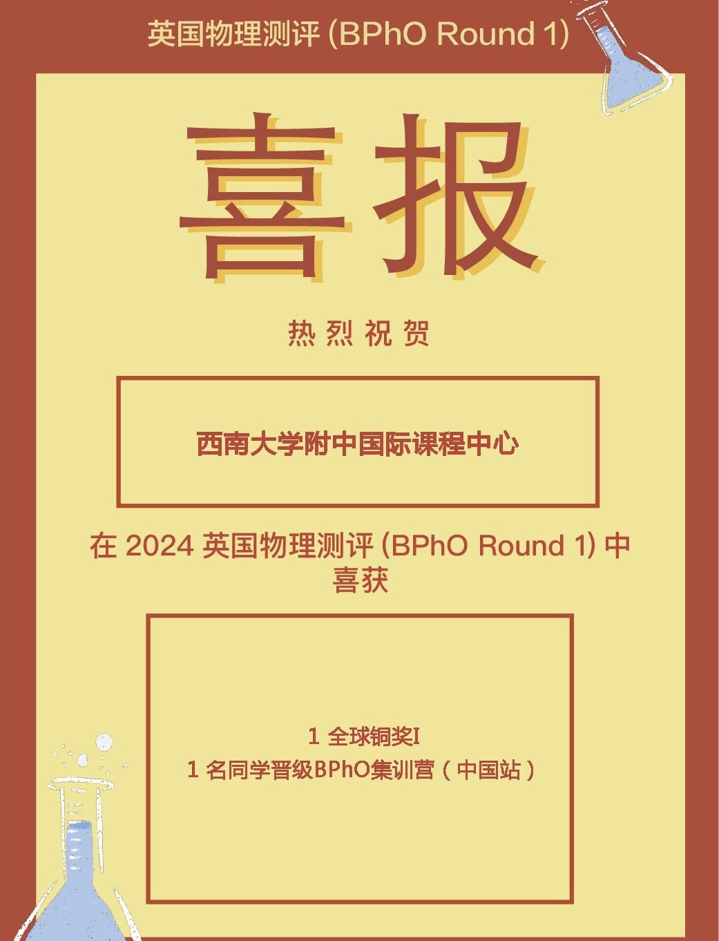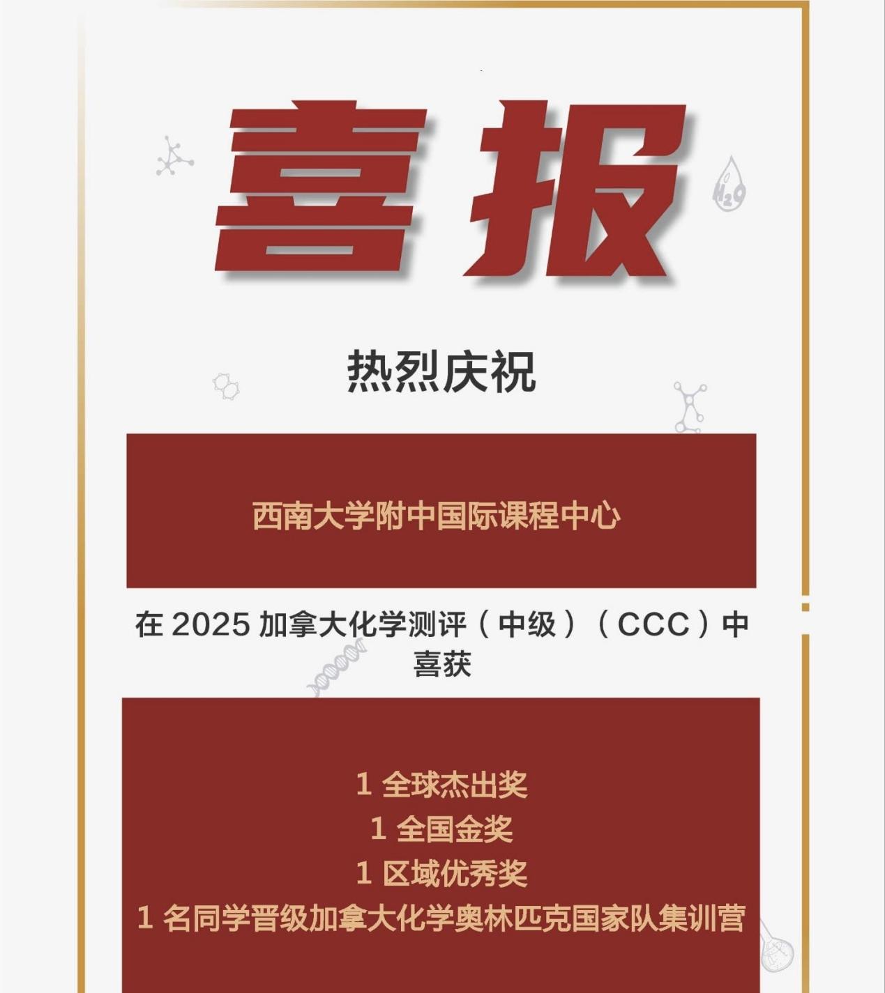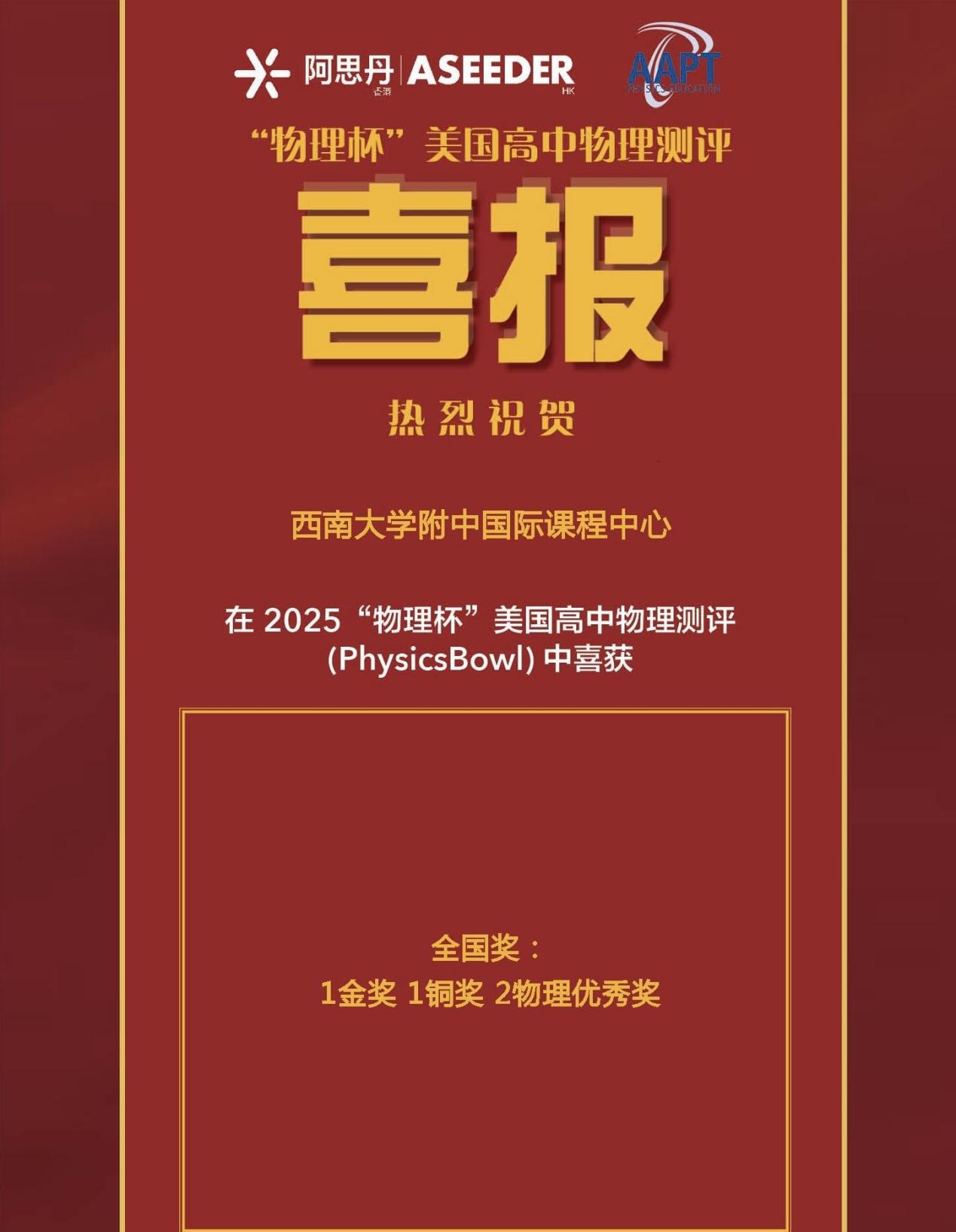 2025年春季学期,bw必威西汉姆联官网附中国际课程中心学子在多项国际竞赛中表现优异,捷报频传,累计斩获全球及全国级别的奖项共计50余项,涵盖数学、物理、化学、生物等多个学科,充分展现出中心学子扎实的学科基础与出色的综合能力。其中,多位学子在国际权威学科测评中脱颖而出,荣获英国生物测评(BBO)全球金奖、加拿大化学测评(中级)(CCC)全球杰出奖、英国物理测评(BPhO Round1)全球铜奖、英国物理测评中级&高级(IPC&SPC)全球金奖等重磅奖项,诠释了敢于挑战、不断超越的精神风貌。