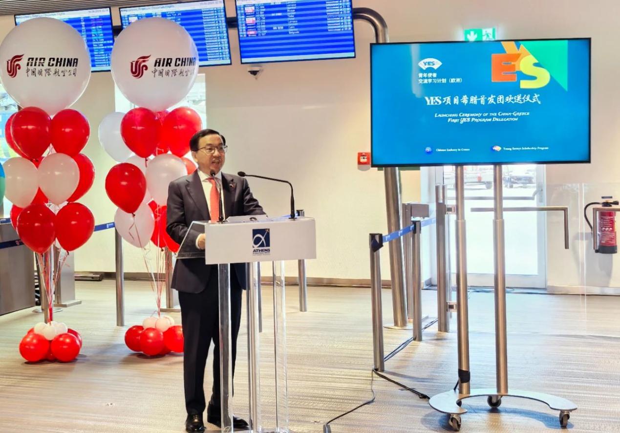 6月18日,方遒大使出席青年使者交流学习计划(YES项目)希腊访华团首发仪式。方大使欢迎访华团成员即将踏上中国之旅,表示中希两国有着跨越千年的文明记忆和深厚友谊,两大文明相似相通,两国人民相知相亲。在中欧建交50周年之际,中希携手启动“欧洲翻番”倡议,推动两国青少年增进交流,对促进中希、中欧友好具有重要意义。
