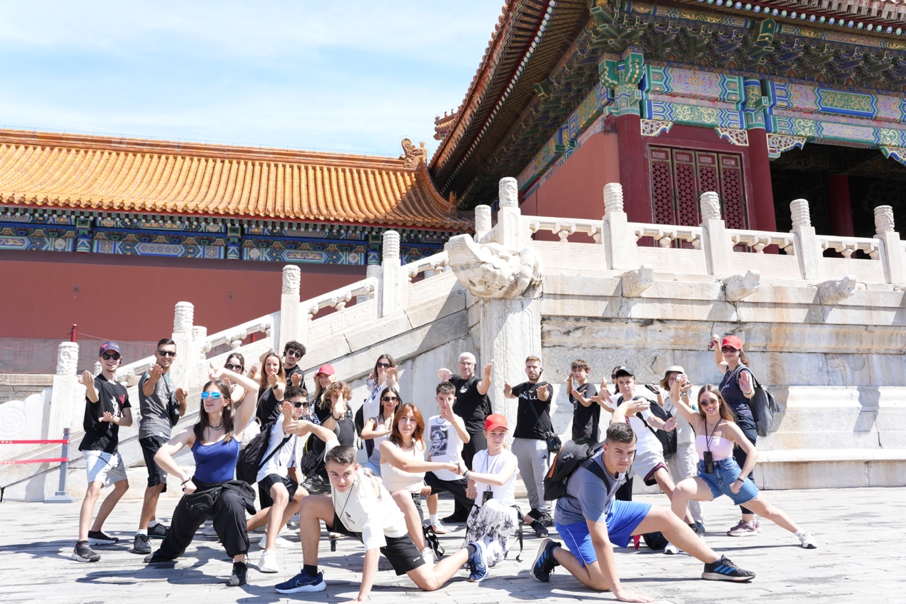 在随后的十余天行程中,代表团走访故宫、少林寺、龙门石窟、重庆解放碑等地标性文化遗产,沉浸式体验武术文化,深入探访中华文明与现代都市并存的中国样貌。此外,代表团还深入中原腹地,抵达河南登封,参访中国武术发源地——少林寺及塔沟武校。师生们实地观摩少林功夫表演,体验少林武术训练课程,了解禅武合一的文化理念。在武术交流中,希腊学员对中国传统武术的严谨体系与深厚哲理表现出极大兴趣。少林寺段成为本次行程中最受期待与最具文化震撼力的环节之一,为跨文化学习注入了精神厚度。