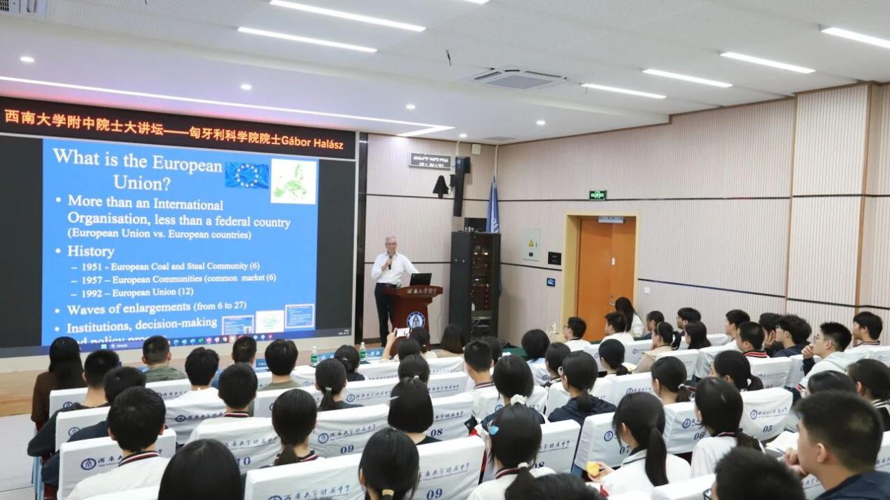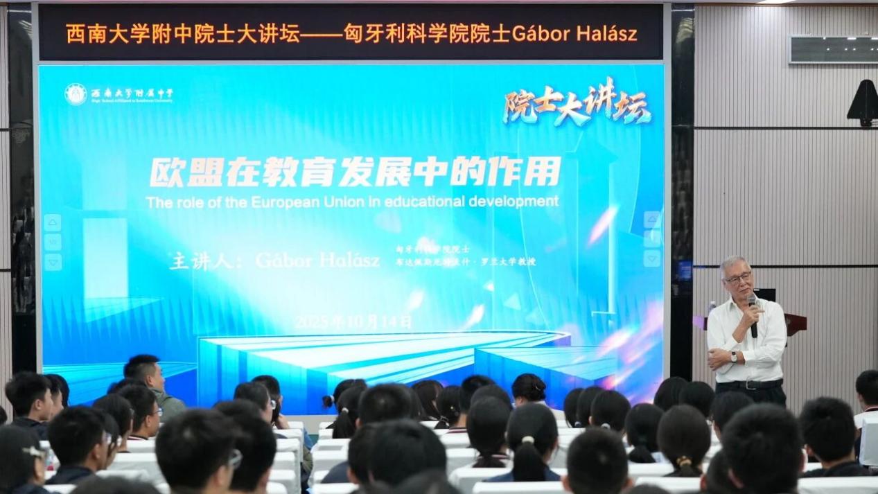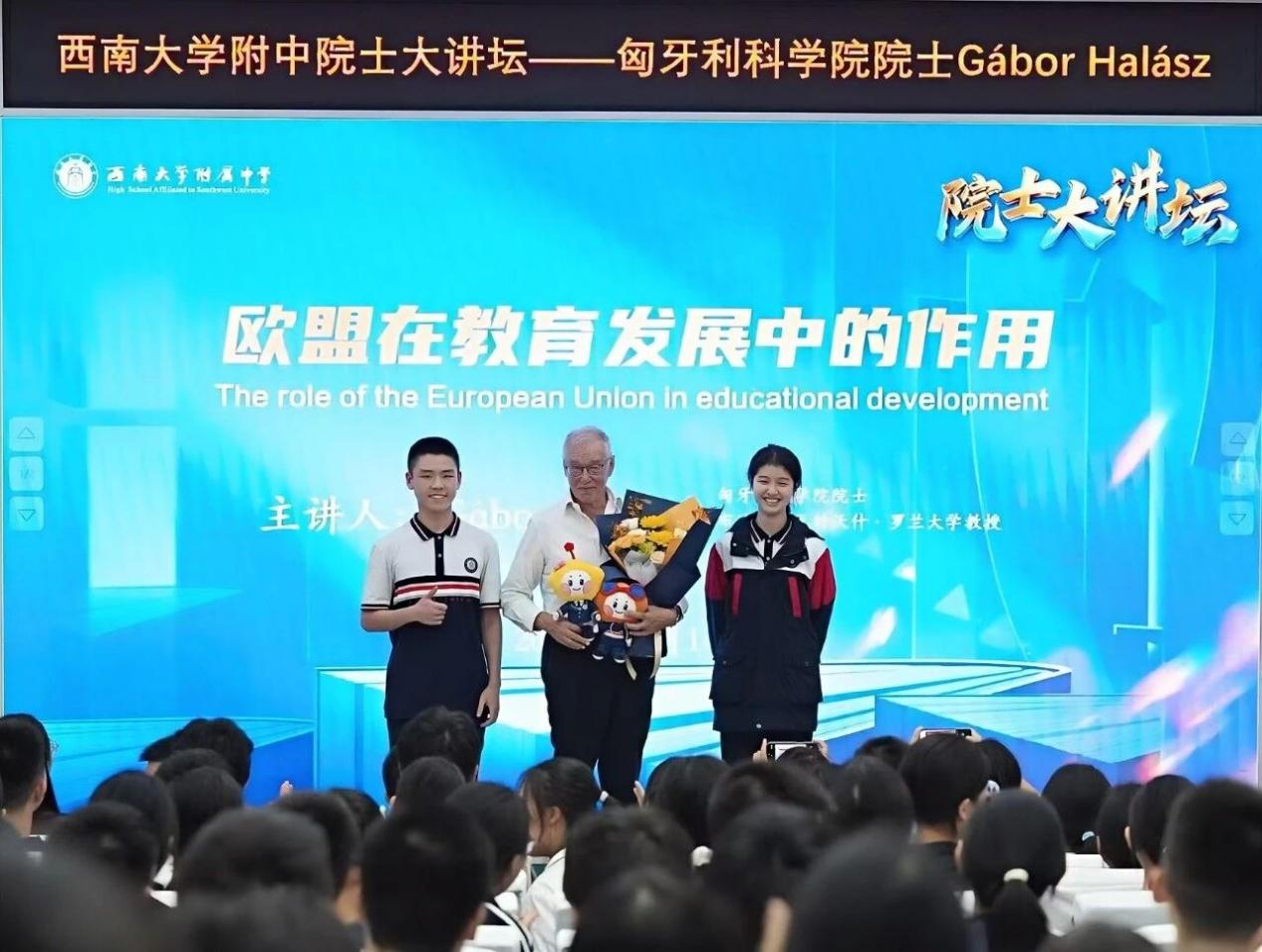 当Gábor Halász院士——这位曾亲手参与塑造欧盟教育政策的学者——在附中的讲台上,与学生们就教育模式、低龄留学等现实议题展开交流时,教育政策的宏大叙事与青少年个体的成长关怀,完成了深刻共鸣。