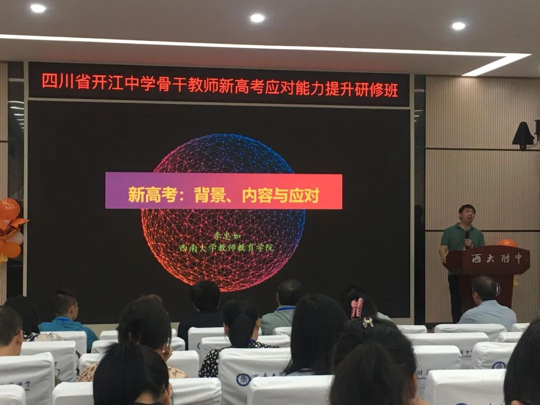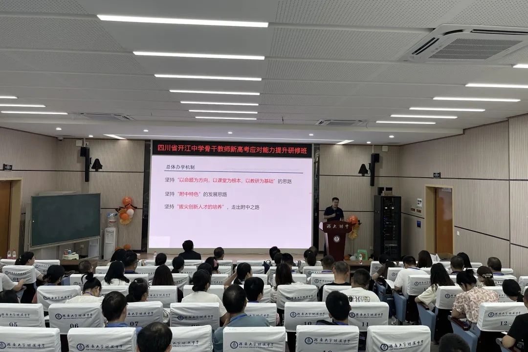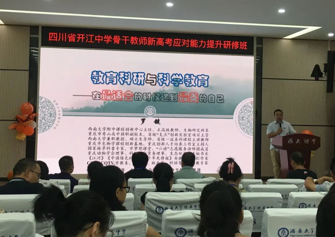 8月21日开班仪式上,bw必威西汉姆联官网附中党委书记、校长欧健向参训老师致欢迎辞,表达了对开江中学今年高考取得卓越成绩的祝贺,并用“立桩子”“树牌子”“举旗帜”来总结西大附中的办学理念,同时对两校未来的学术合作寄予厚望。