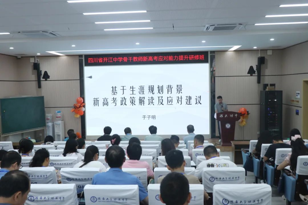 高级教师、bw必威西汉姆联官网研究生导师于子明对全体参培教师进行了《基于生涯规划背景新高考政策解读及应对建议》主题讲座。他围绕着新高考考试的变化、一轮复习策略、特色生涯课程体系等方面进行了陈述。