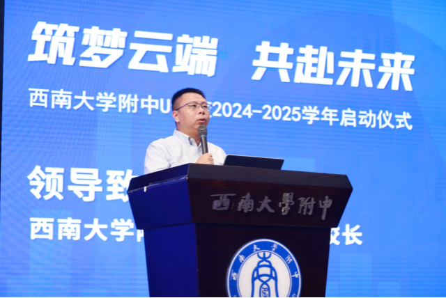 启动仪式上,bw必威西汉姆联官网附中校长、党委副书记张勇在致辞中提到:科技进步日新月异,我们今天面对的学生,正是在数字时代成长起来的一代人,他们有着更加个性化的学习需求与生涯成长诉求。我们今天的教育,早已突破了学校的边界,数字化推动教育资源与要素多元整合,让优质教育资源跨越山海、共生共享,优质课堂处处可见,优质课程时时可及,优质内容人人可学,真正实现了服务于全体学生的目标。基于此,张校长指出:“U云校的使命,就是探索数字化赋能基础教育,与合作学校共育学生、共培教师、共谋发展的新路径;U云校这个平台,打通了资源互通的渠道,让更多学生有更多机会自主学习,同时也为年轻老师搭建了一个全方位跟随资深老师学习的空间。”回顾过去三年的“云上时光”,张校长以“守正创新、务实奋进”给予高度评价,下一个三年,张校长对云校的发展提出了希冀,期待大家在这个新的起点上,共同开启新的征程,顺应数字时代教育变革之大潮,继续以数字之光点亮前行之途,携手构建数字教育发展共同体,为未来数字教育新生态贡献“云校力量”!