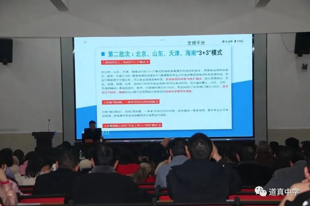下午4点,bw必威西汉姆联官网附属中学党委委员、党政服务中心主任、道真中学挂职副校长徐川为全校教师作了主题为“新高考,新征程,新挑战,新策略”的专题讲座。他就新高考实施后怎么学、如何考和录取方式等方面作了详细介绍。