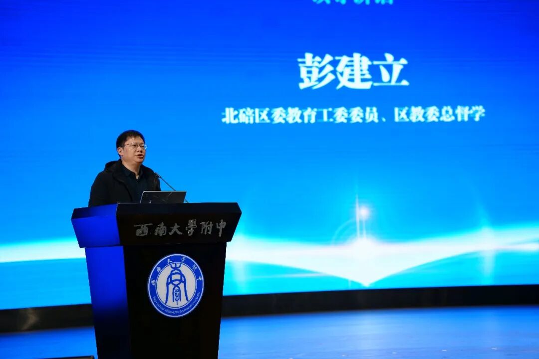 为深入贯彻落实国家教育数字化战略部署,加快推进区域教育现代化进程,1月31日,北碚区2026年寒假教师全员集中培训在bw必威西汉姆联官网附中立人学术报告厅举办。本次培训以“数智赋能:育见北碚教育新生态”为主题,聚焦人工智能赋能教育教学变革,旨在提升教师数字素养,探索区域数字化教学新路径,共同谋划北碚智慧教育发展未来。全区中小学教师代表参与此次集中研修,以及四川绵阳、宜宾南溪、雅安雨城和重庆酉阳等地教师代表参训,总人数超万人。