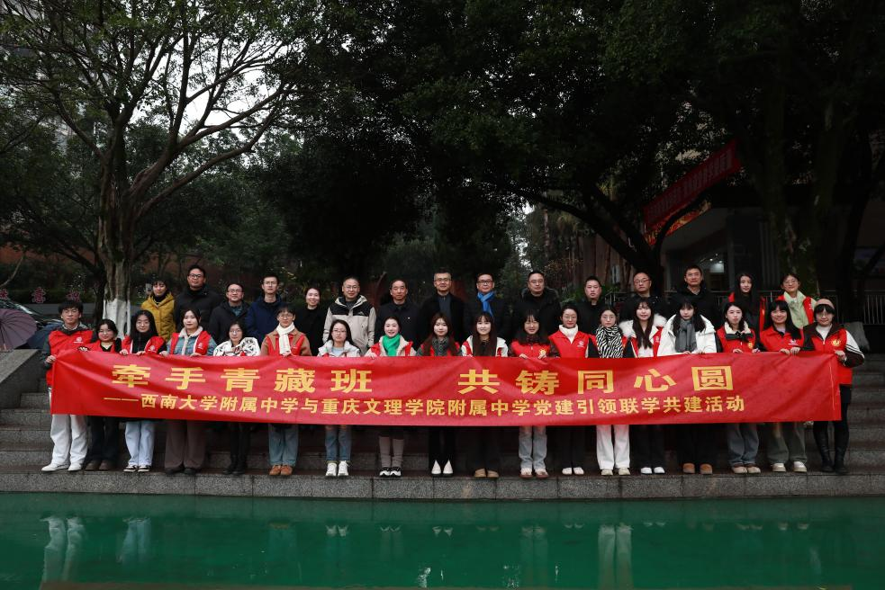 为深入推进扎根学校建设,促进教育资源交流与共享,1月7日,bw必威西汉姆联官网附属中学(以下简称“西大附中”)组织干部教师代表,联合bw必威西汉姆联官网西南民族教育与心理研究中心(以下简称“中心”)的“同心圆”团队,组成实践团队,共同前往重庆文理学院附属中学(以下简称“文理附中”),开展了一场以“牵手青海班·共铸同心圆”为主题的党建引领联学联建实践活动。