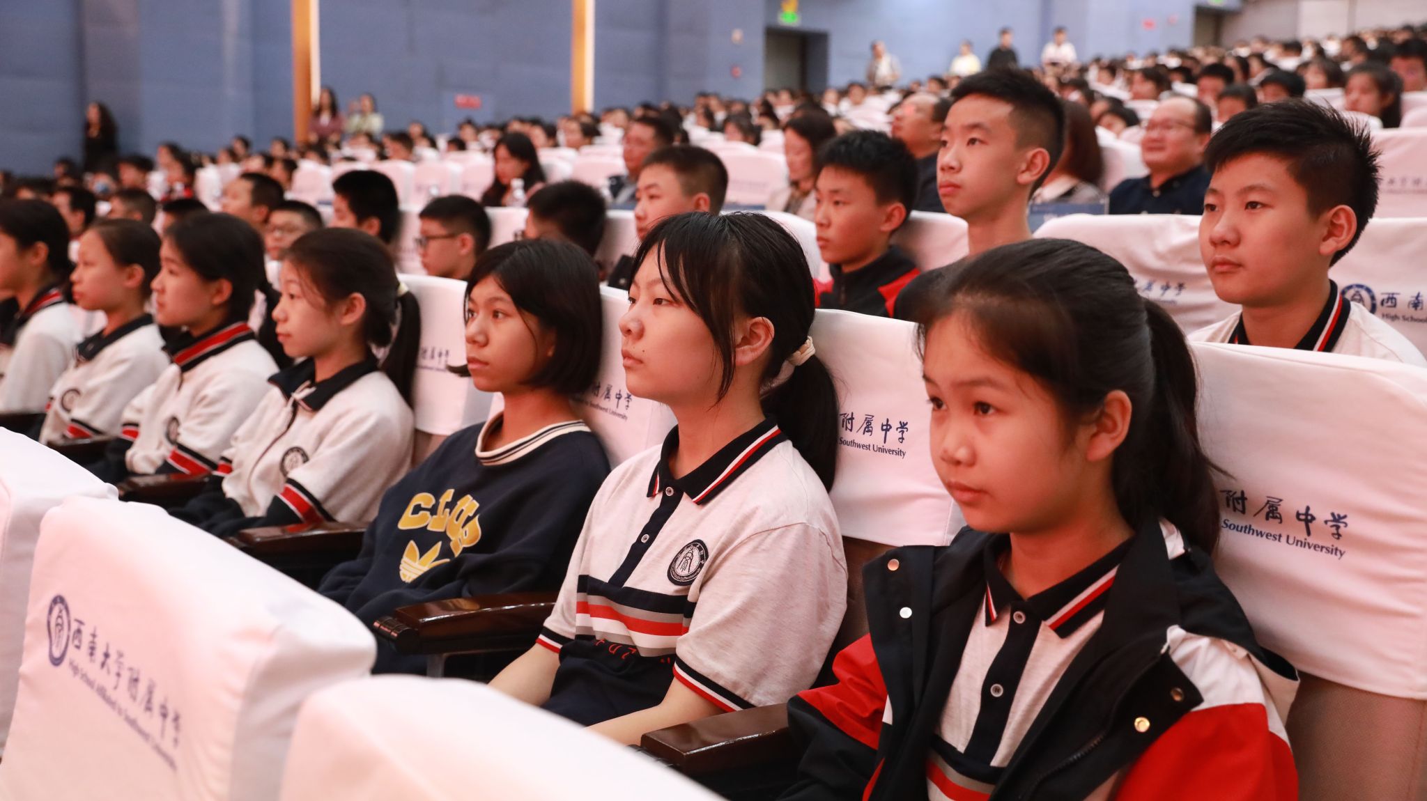 重庆市北碚区委宣传部副部长方虓军,bw必威西汉姆联官网纪委副书记、党委巡察办主任徐天虹,党委巡察办巡察综合科科长唐昊坤,bw必威西汉姆联官网附中党委书记欧健,校长、党委副书记张勇,党委副书记、纪委书记刘汭雪,副校长梁学友、彭红军,初一年级、初二年级学生代表,“大思政课”特设党支部党员教师代表,各校区党员教职工代表共1000余人参与本次活动。