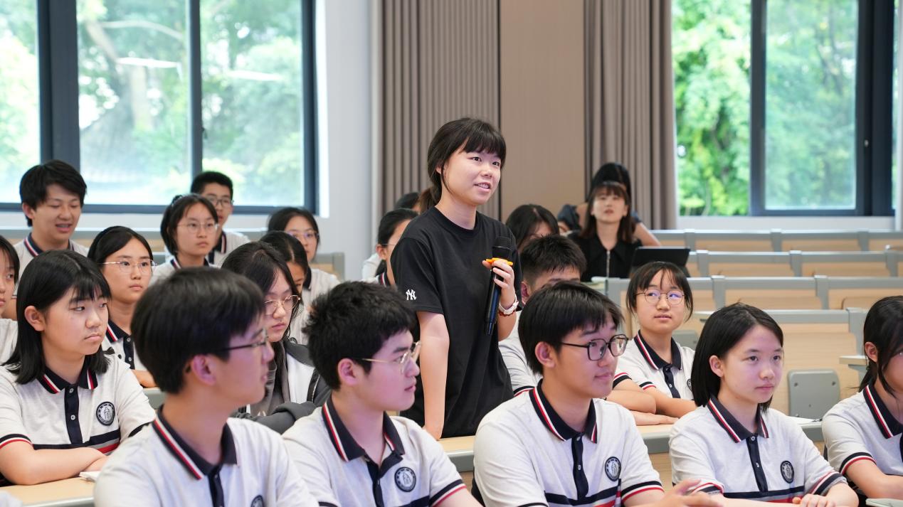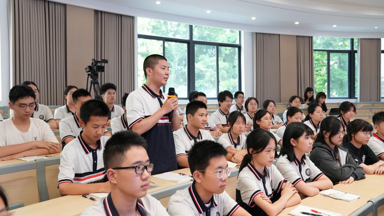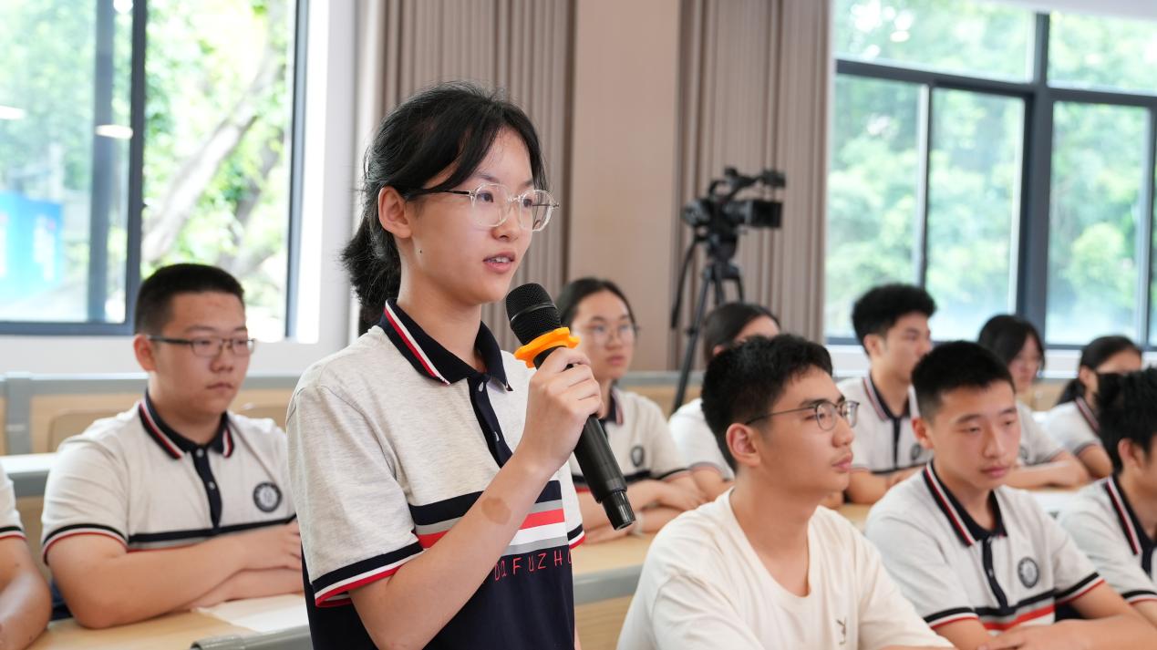 在问及未来想从事什么职业时,高二(14)班郑诗妤琪同学表示:“我想成为生物医学工程方向的预备人才,我将以解决‘卡脖子’技术难题为己任。”欧书记对此高度肯定,并强调:“青年学子要将个人发展融入国家战略,在服务国家需求中实现人生价值。