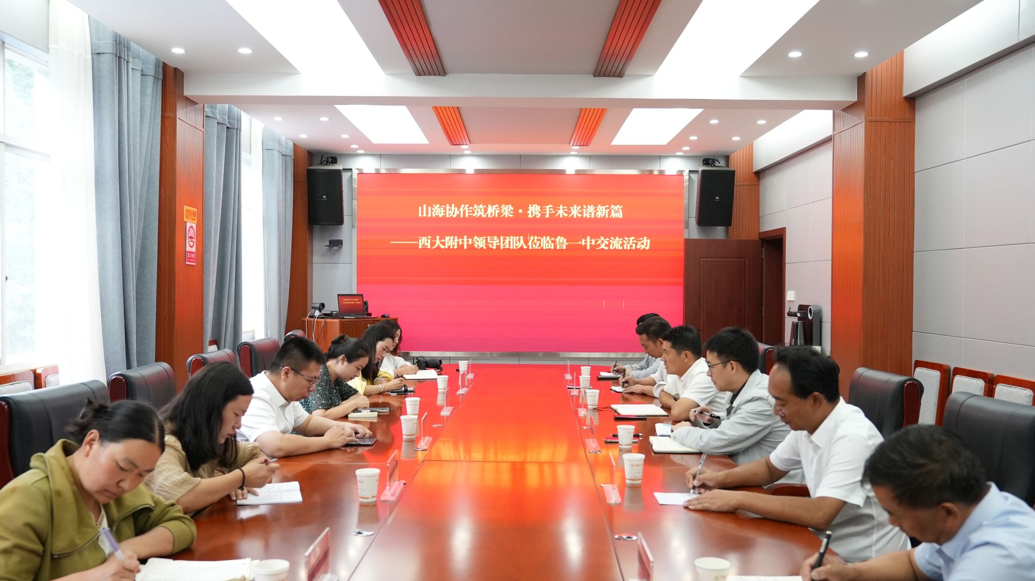 座谈会由鲁甸县教育体育局副局长符明川主持西大附中校长张勇率队与鲁甸一中校长付辉明、党委书记徐晓东一行在会上开展了交流分享