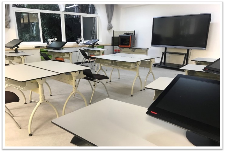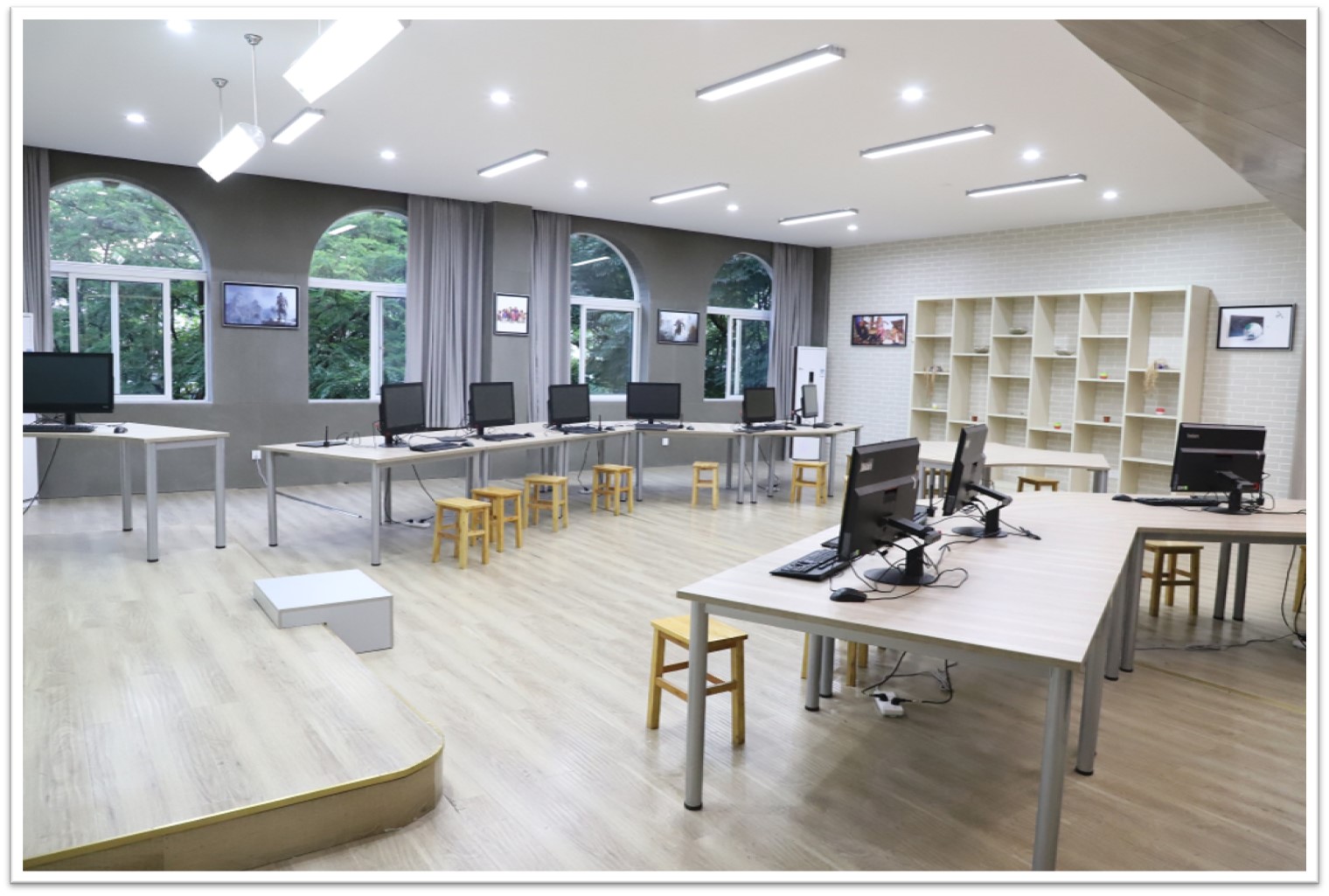 电脑艺术设计室是电脑平面设计、动漫设计、动画制作、视频编辑等课程的实训实验室,以培养学生的创造性思维和实际动手能力为目的。电脑艺术设计室主要是信息技术与美术教研组在使用,主要承担的是美术的电脑艺术模块课和信息技术的电脑制作活动的开展。